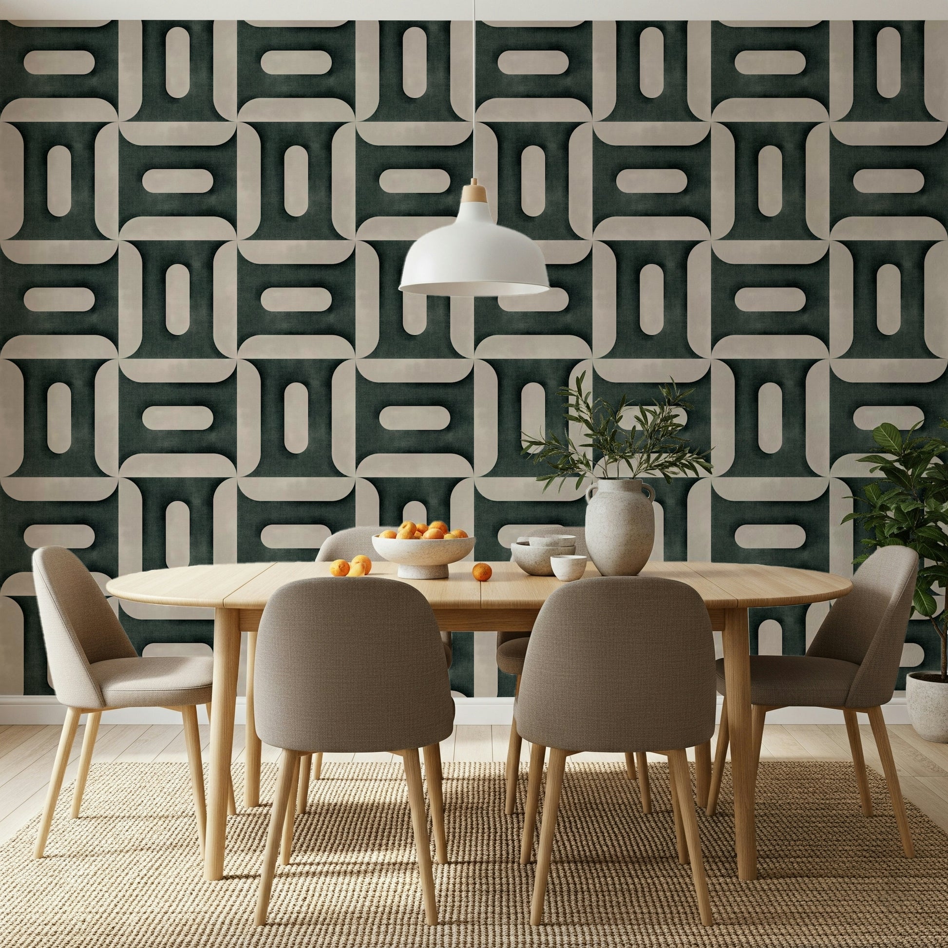 Evoke a sense of refined nostalgia with 'Modern Textured Geometries Vintage Denim', a striking design that blends geometric precision with tactile depth. The interplay of smooth, rounded forms against a textured, denim-like backdrop creates a compelling visual narrative, perfect for adding subtle drama to any interior. This sophisticated wall covering features a harmonious colour palette, reminiscent of well-worn denim, lending it a timeless appeal. The textured effect invites touch, offering a multi-sensory experience that elevates the space beyond mere aesthetics. The interlocking geometric shapes are both modern and reminiscent of mid-century design, creating a sophisticated conversation between eras. Enhance your living room, bedroom, or study with this sophisticated pattern, bringing a touch of vintage charm and a contemporary edge to your wall décor.