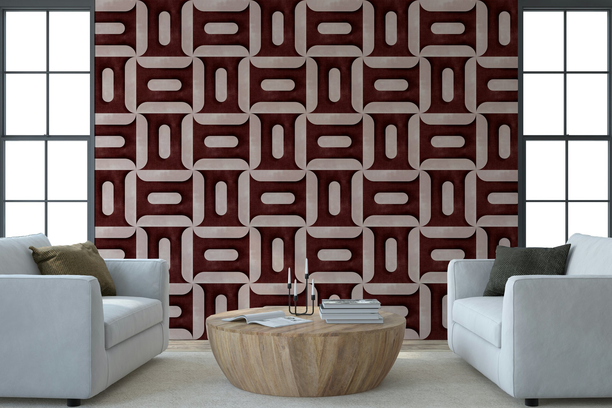 Modern Textured Geometries Wine Wallpaper⁠