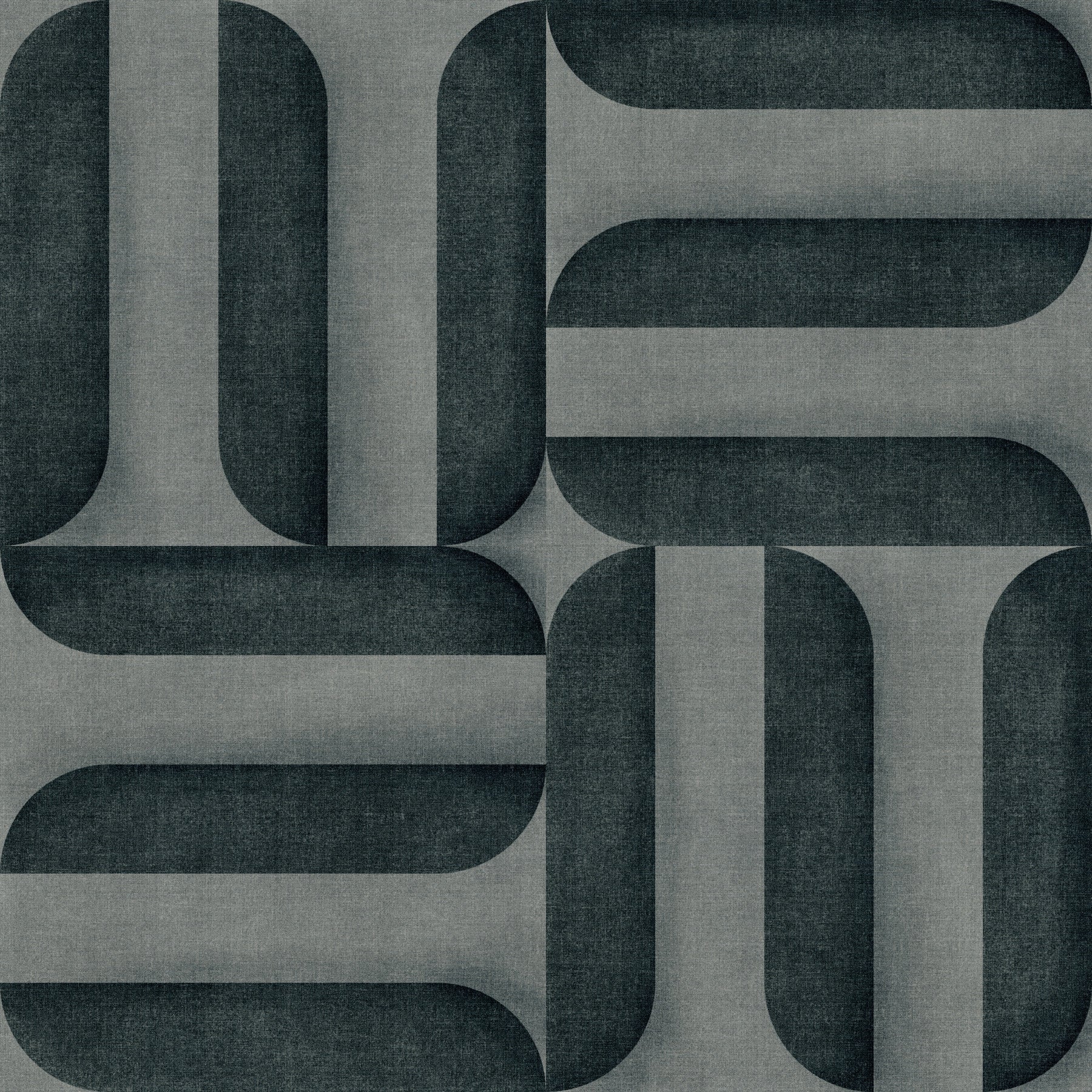 Modern Textured Signs Vintage Denim Wallpaper showcases bold curved geometric forms in deep denim blue tones layered over a subtle linen-inspired texture. The structured pattern reflects mid-century modern influence while delivering a cool, contemporary edge. Its rich vintage blue palette pairs beautifully with white, grey, tan leather, wooden finishes, and brushed metal accents.