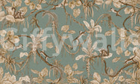 Nature-themed wallpaper with monkeys perched on leafy branches