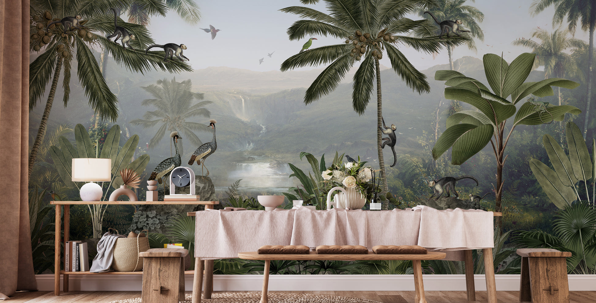 Bring beautiful nature indoors with our newly styled monkey forest wallpaper murals. These vibrant forest scenes with playful monkeys feature a high-resolution, jungle-themed mural perfect for bedrooms or living rooms. Monkey forest wallpaper is available in peel-and-stick options, from which you can choose the one that suits your needs. These 3d jungle wallpaper murals are applied super conveniently as a fantastic route to a stunning and exotic element for your home. All you have to do is shop from the lots displayed to bring the magic alive on your walls!