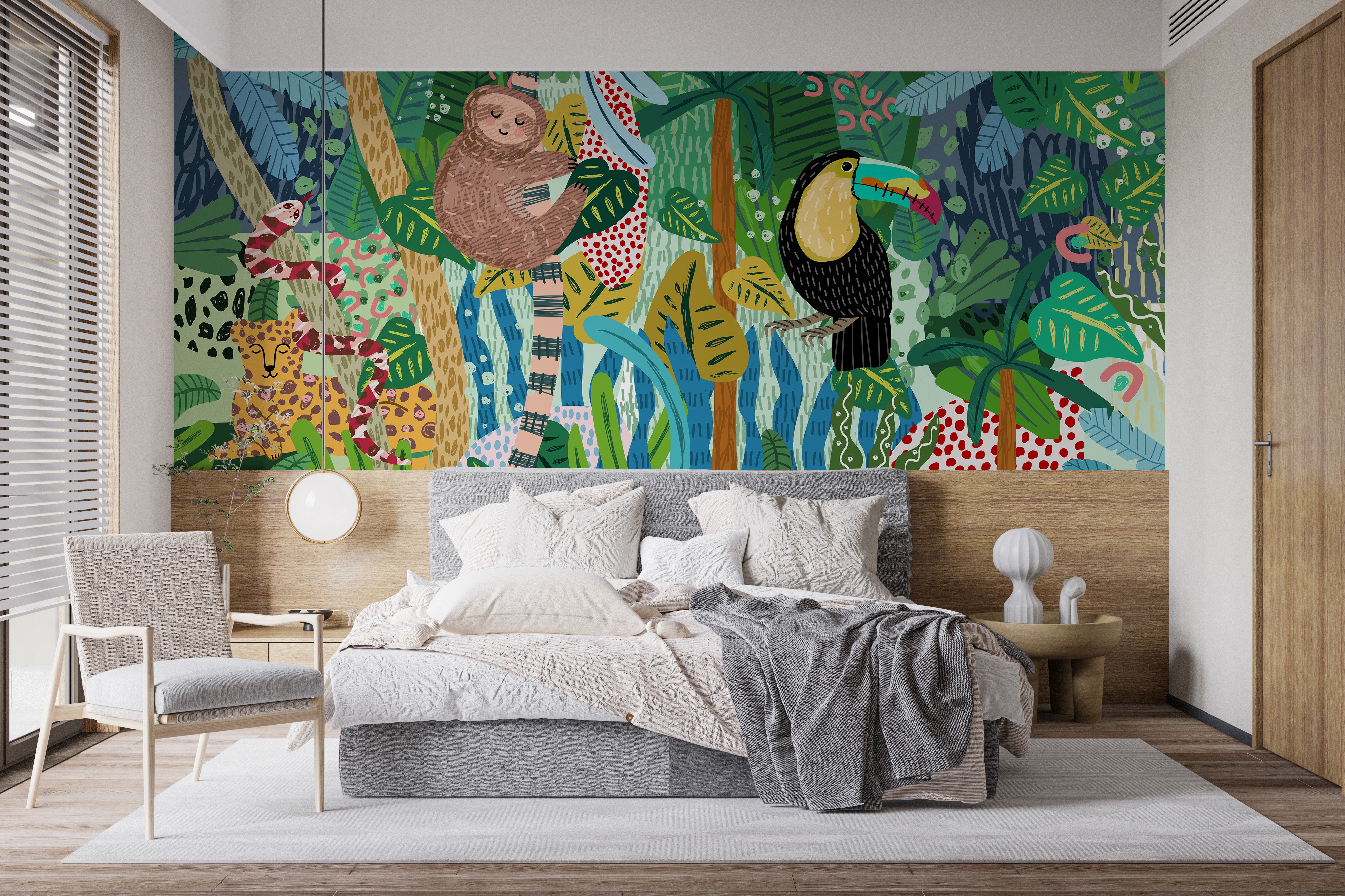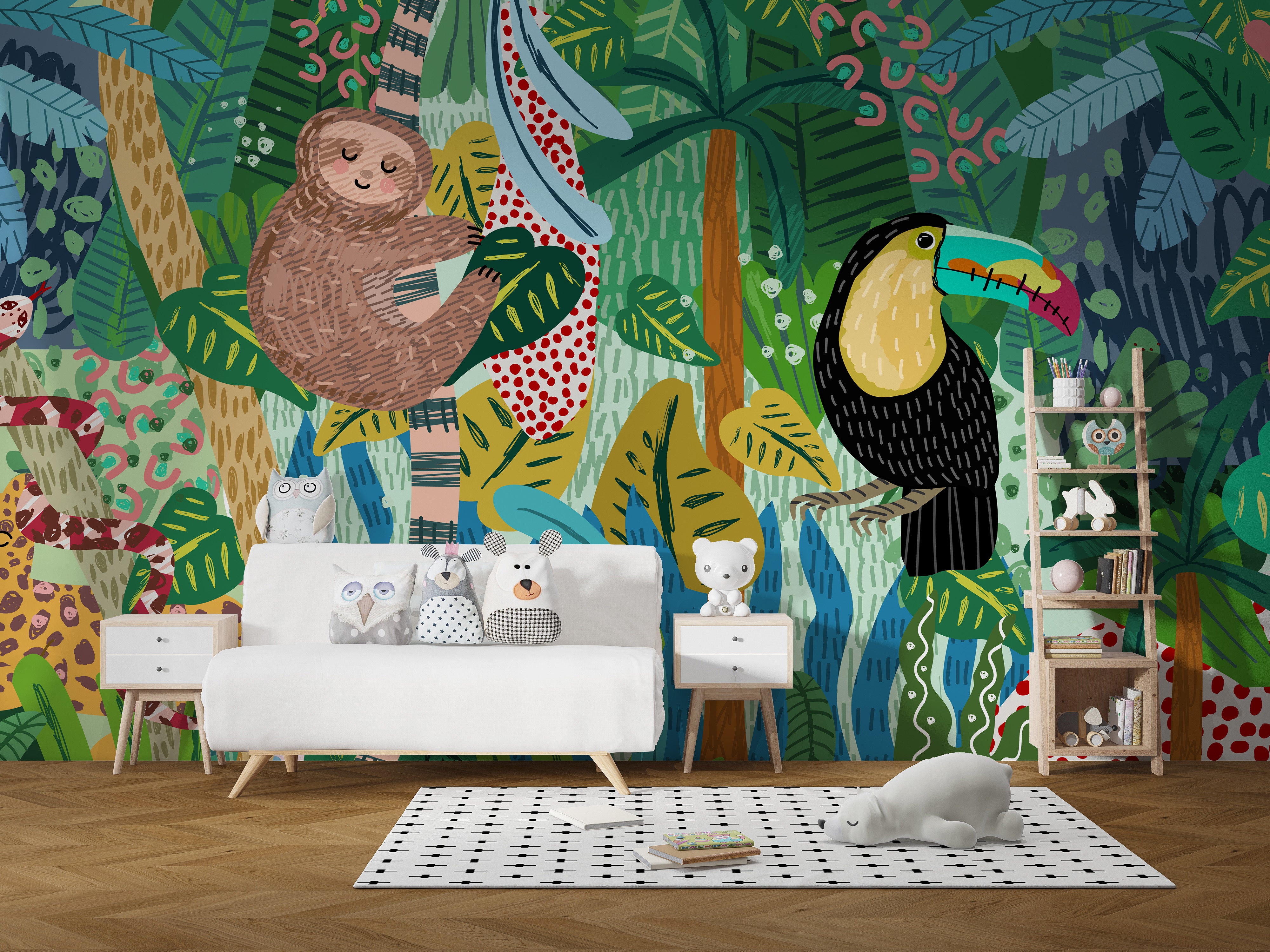 Monkey & Toucan Leopard Abstract Wallpaper for Kids Room