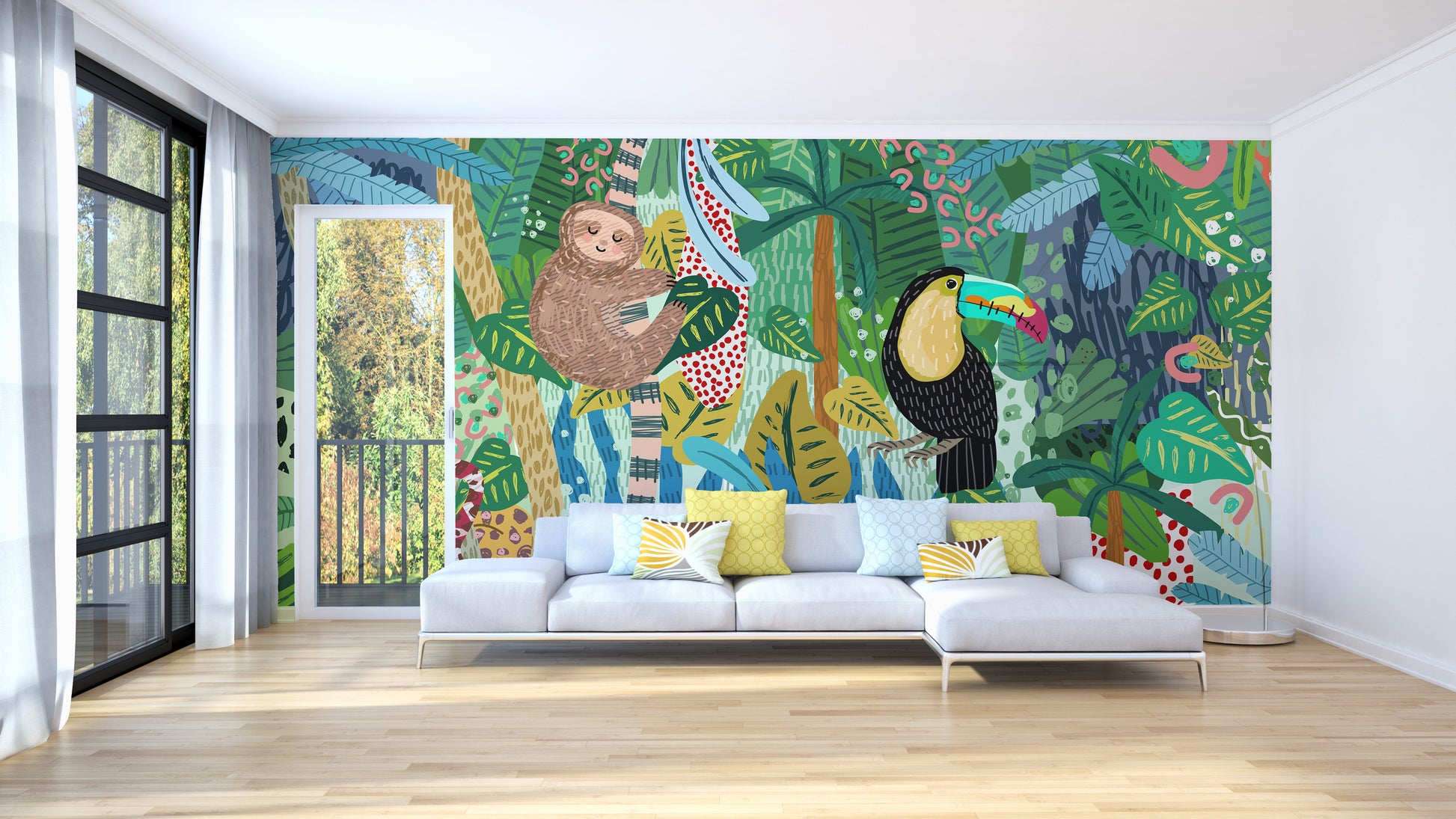 Monkey & Toucan with Leopard Abstract design Wallpaper Murals - Giffywalls