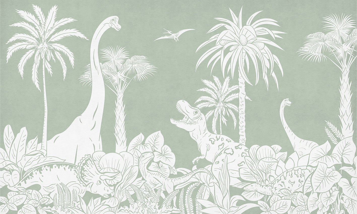 Monochrome Dinosaur Green Mural