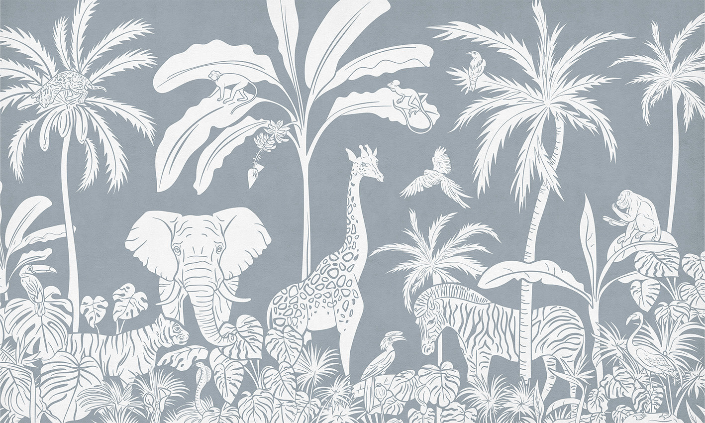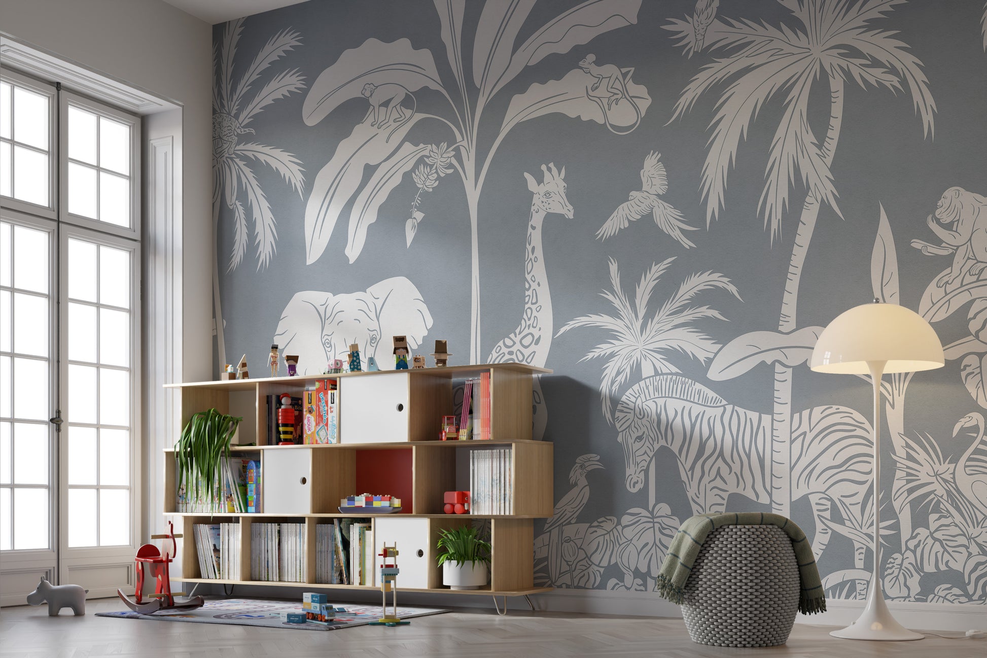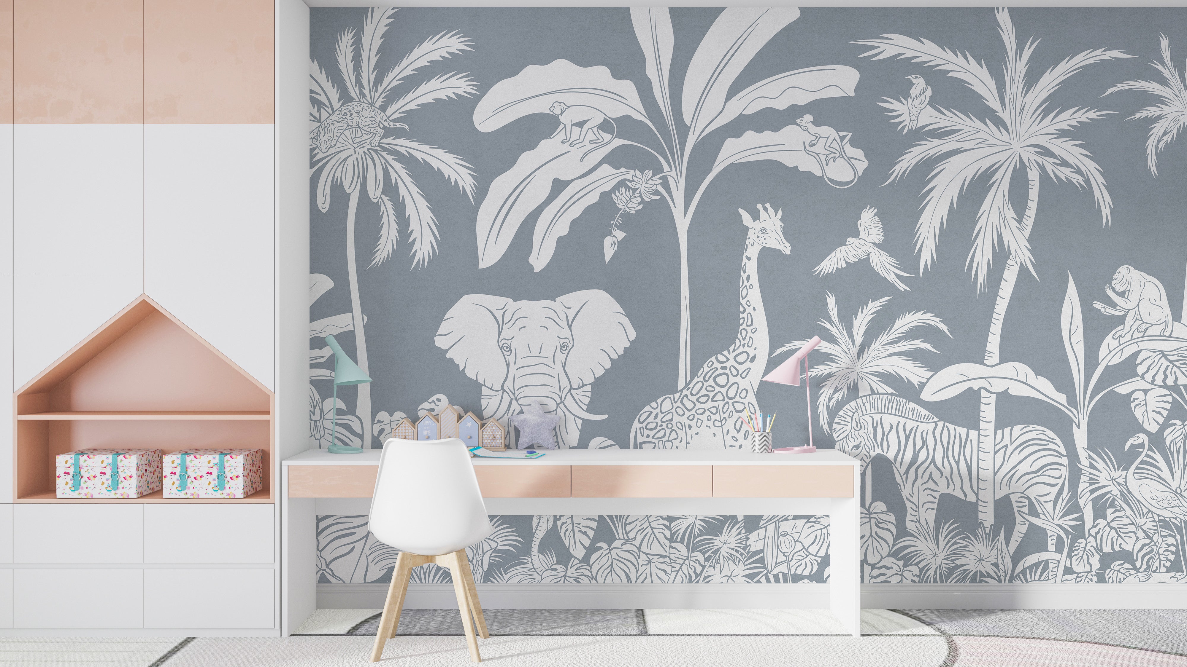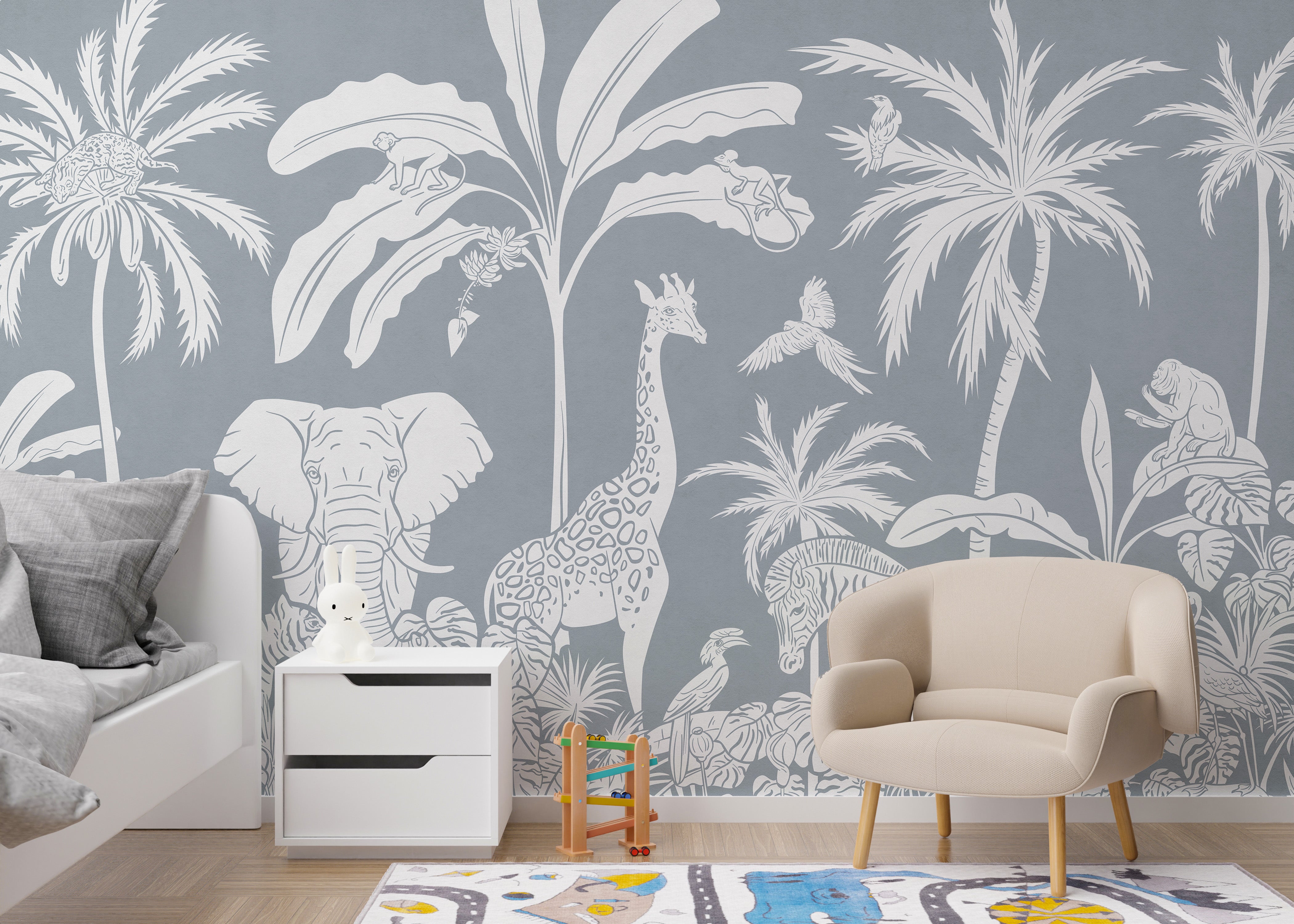 The monochrome jungle blue wall mural is the ideal choice for adding excitement to your child's room. This kids animal wallpaper showcases a vibrant jungle scene with elephants, giraffes, zebras, and other wildlife, all in a monochrome blue palette. The detailed artwork captures the essence of a jungle adventure, making it a perfect backdrop for playtime and learning. Crafted from high-quality, durable materials, this mural is designed to withstand the wear and tear of a busy child's room. Invest in the Monochrome Jungle Blue Wall Mural today and enjoy the benefits of free delivery. Get yours now!