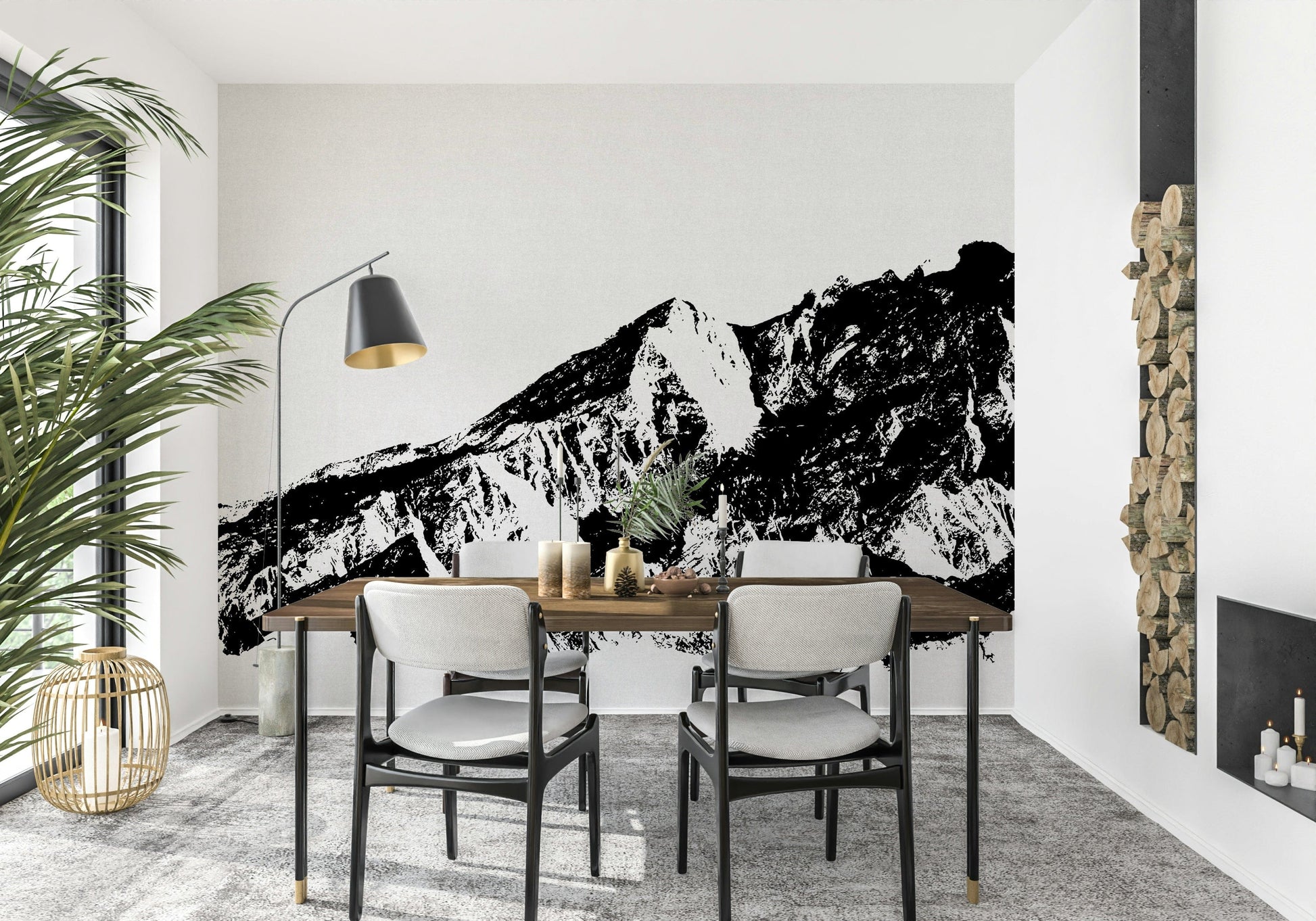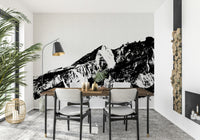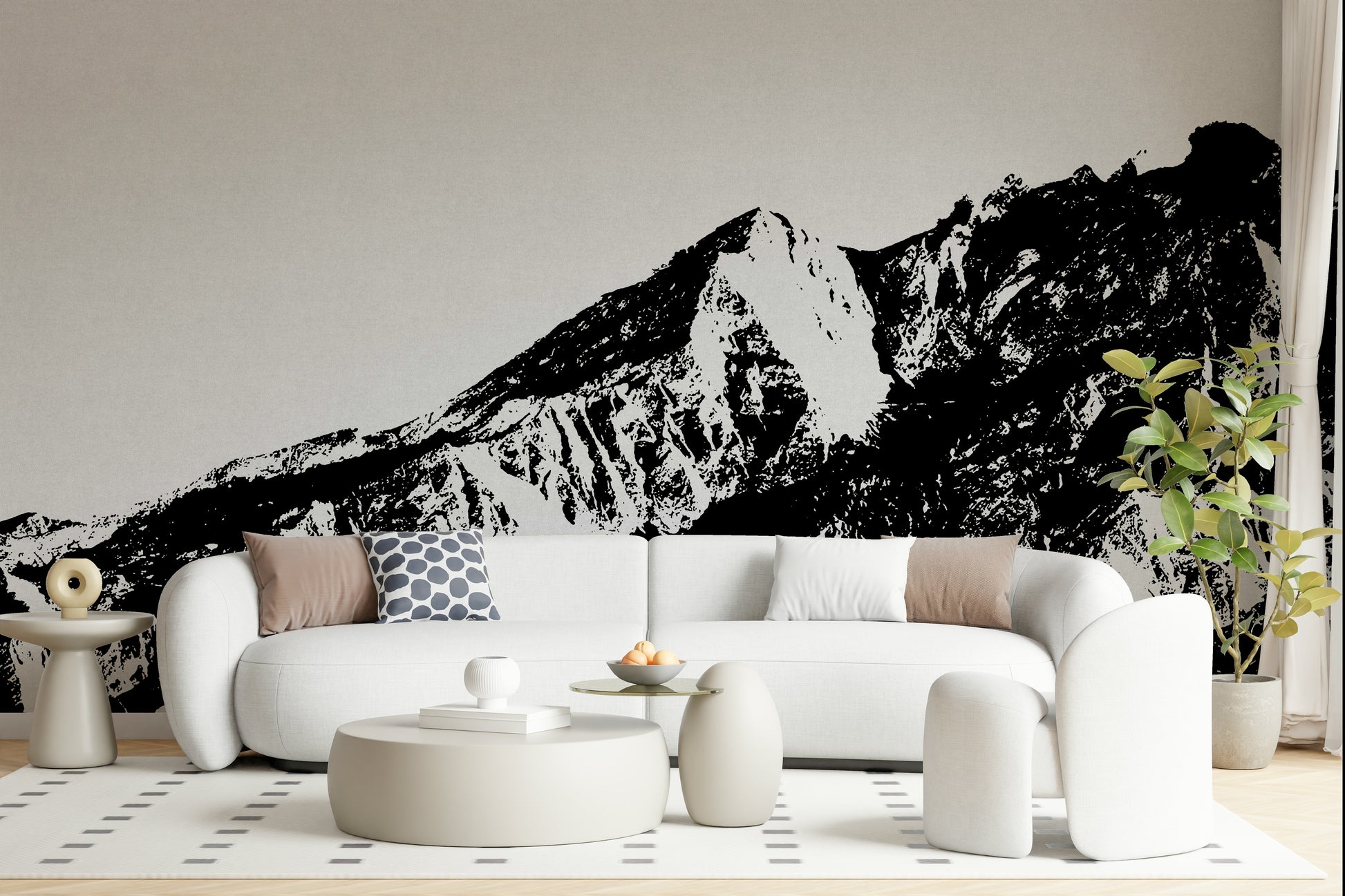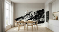 Bring nature's drama indoors with this black and white mountain range. Striking in its simplicity, this design evokes a sense of scale and rugged terrain. The monochrome palette creates a sophisticated look. This wallpaper for walls works well in a living room, study, or office, establishing a space that is both impressive and calming. Consider it for a feature wall to create a focal point in any room and add a modern touch.