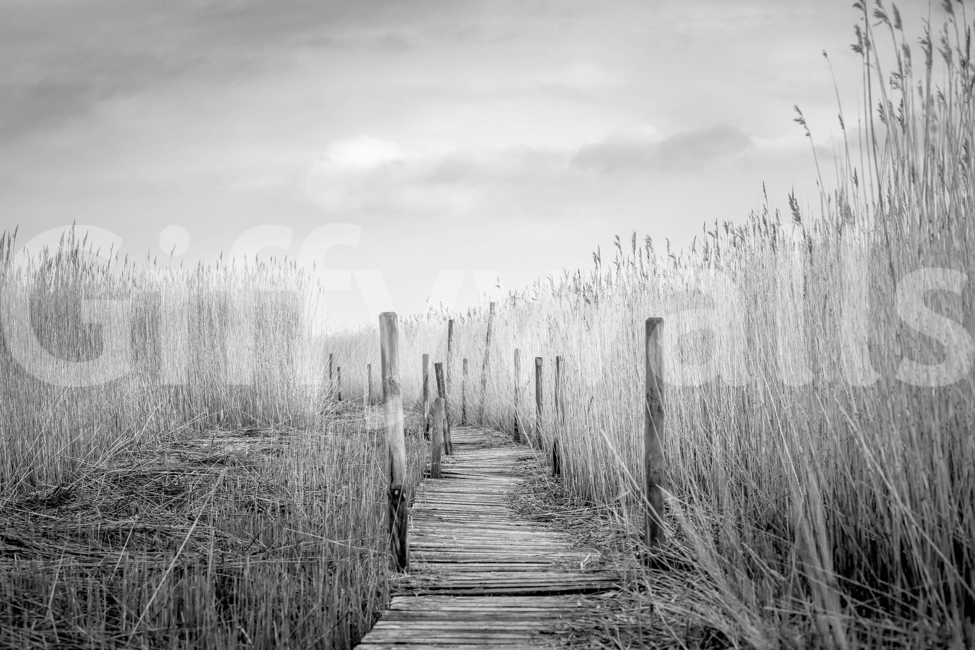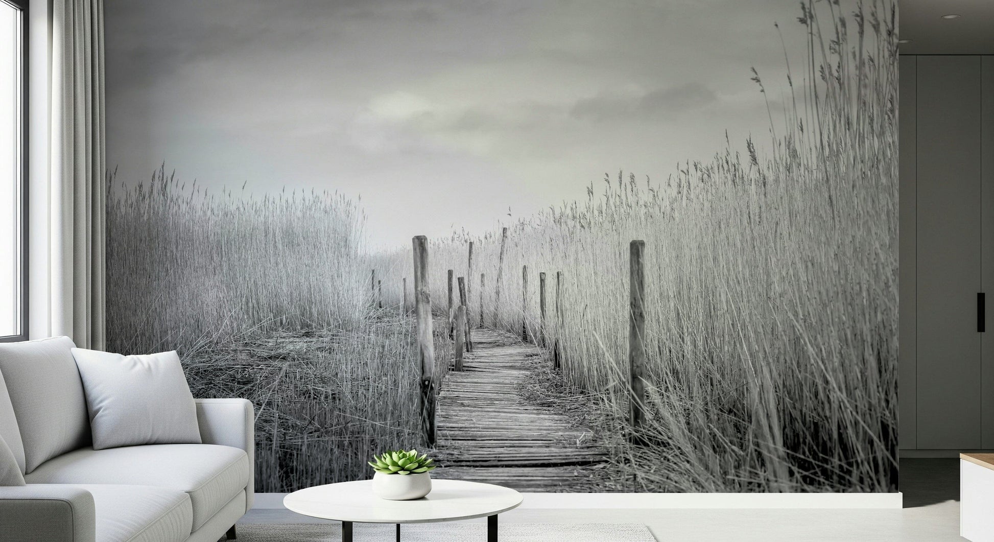 Embark on a serene visual journey with "Monochrome Marsh Path". This captivating wallpaper invites you to wander along a weathered wooden path, stretching into a distant horizon obscured by the whispering reeds of a vast marshland. Rendered in striking monochrome, the image emphasises texture and form, highlighting the intricate details of the aged wood and the feathery grace of the surrounding vegetation. The subtle gradations of grey create a sense of depth and tranquility, evoking a feeling of peaceful solitude. This atmospheric scene is perfect for creating a calming and contemplative ambiance on your screen. Let the "Monochrome Marsh Path" transport you to a quiet sanctuary, a place of reflection and natural beauty, even in the midst of a bustling day.