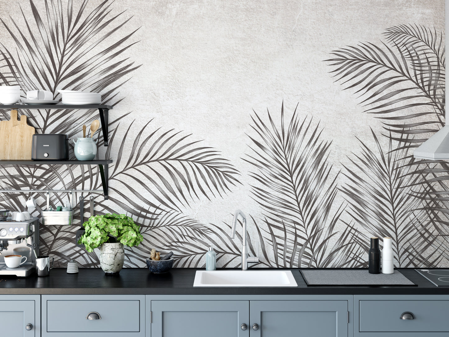 The monochrome tropical palm leaves mural wallpaper is a striking and stylish choice for enhancing dining rooms with its unique blend of themes and colours. This wallpaper features an elegant tropical design, showcasing an array of palm leaves in a sophisticated monochrome scheme. Perfect for those who love a touch of nature with a modern twist, it brings a vibrant yet understated elegance to any dining area. The contrast between the bold leaf patterns and the monochrome colour palette creates a visually appealing and contemporary look, making it an ideal backdrop for both everyday meals and special occasions. As a dining room wallpaper, it adds a sense of sophistication and a distinctive character to the space. Whether you're aiming for a minimalist, modern, or eclectic interior, this tropical, monochrome, leaves-themed wallpaper is versatile enough to complement a wide range of styles, making it a popular choice for homeowners seeking to create a memorable and inviting dining environment.