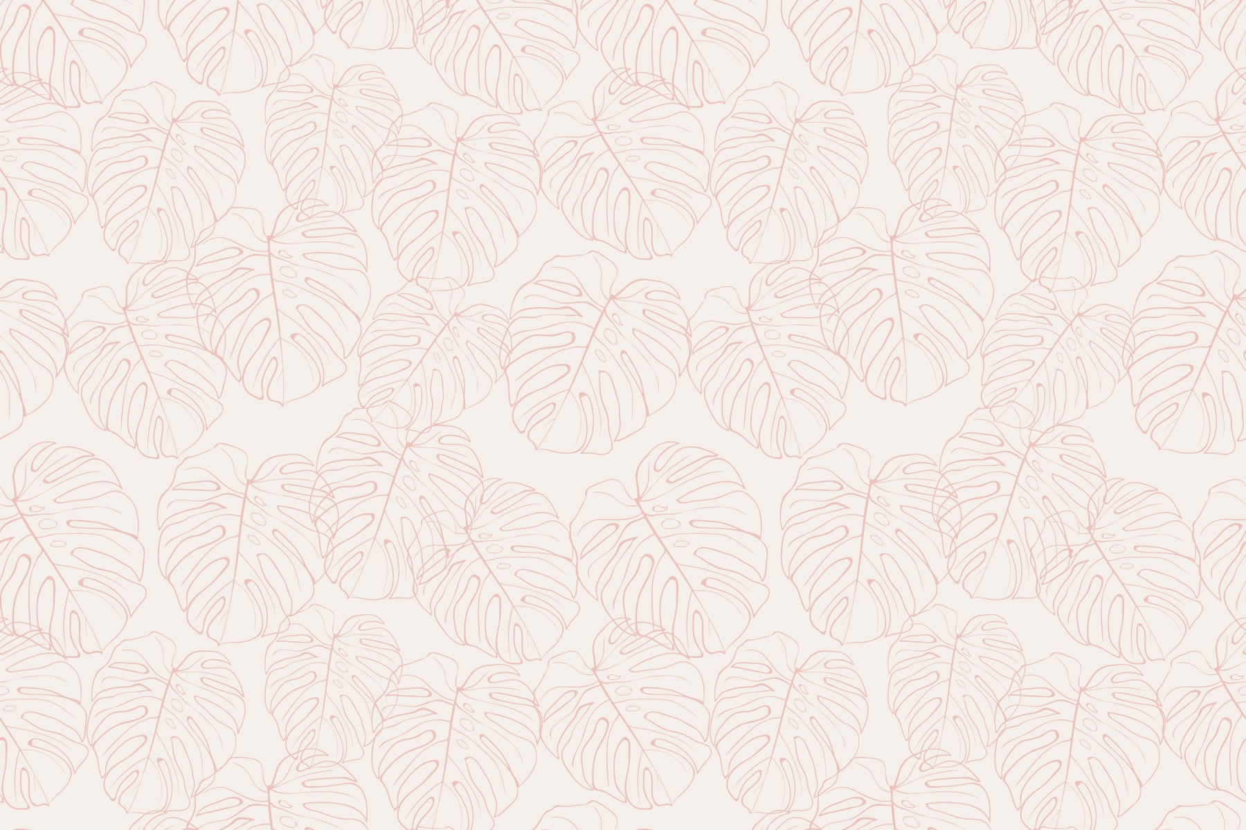 The design features a repeating pattern of soft, delicate monstera leaves.