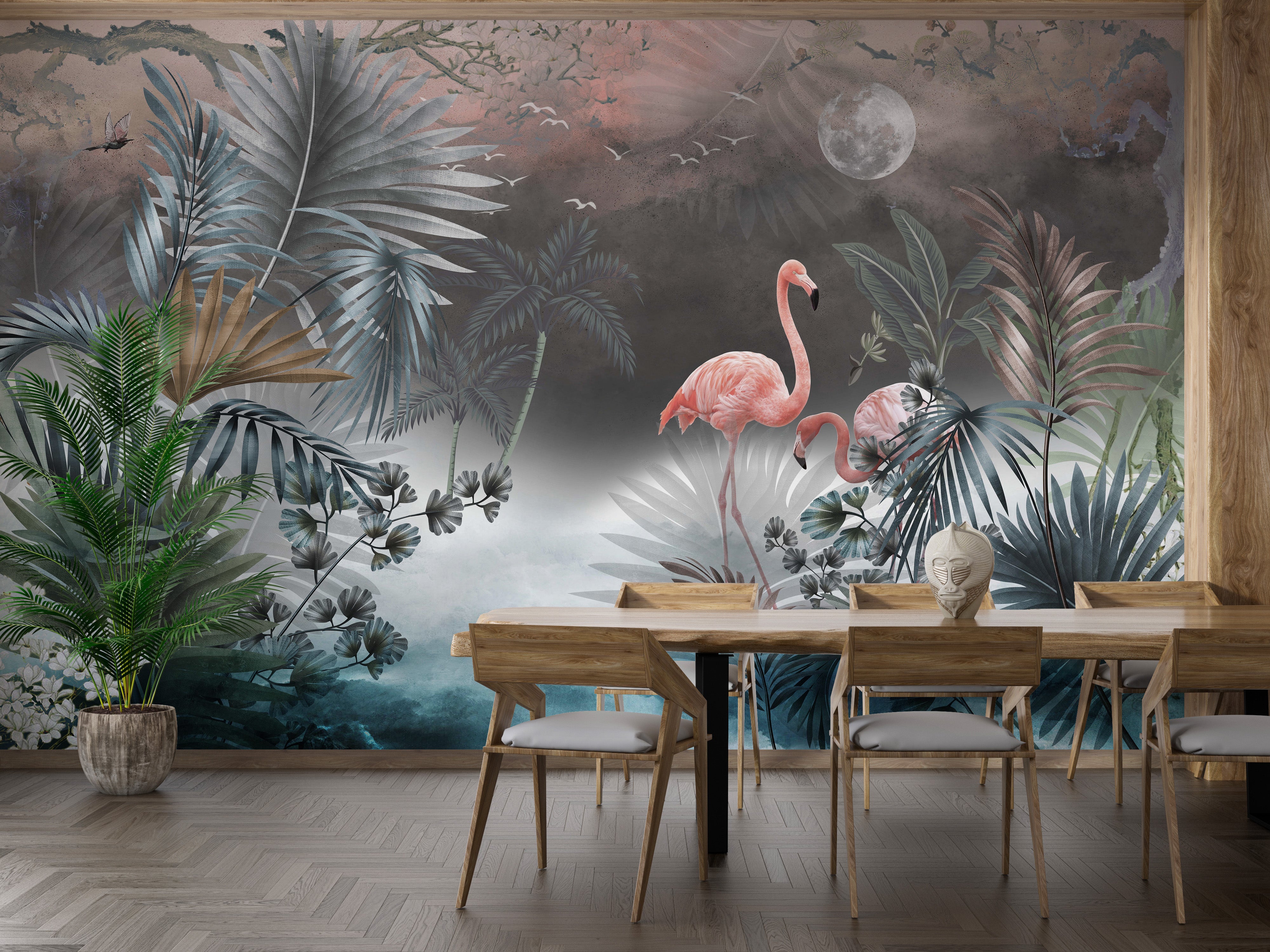 Stylish tropical monstera wall mural art