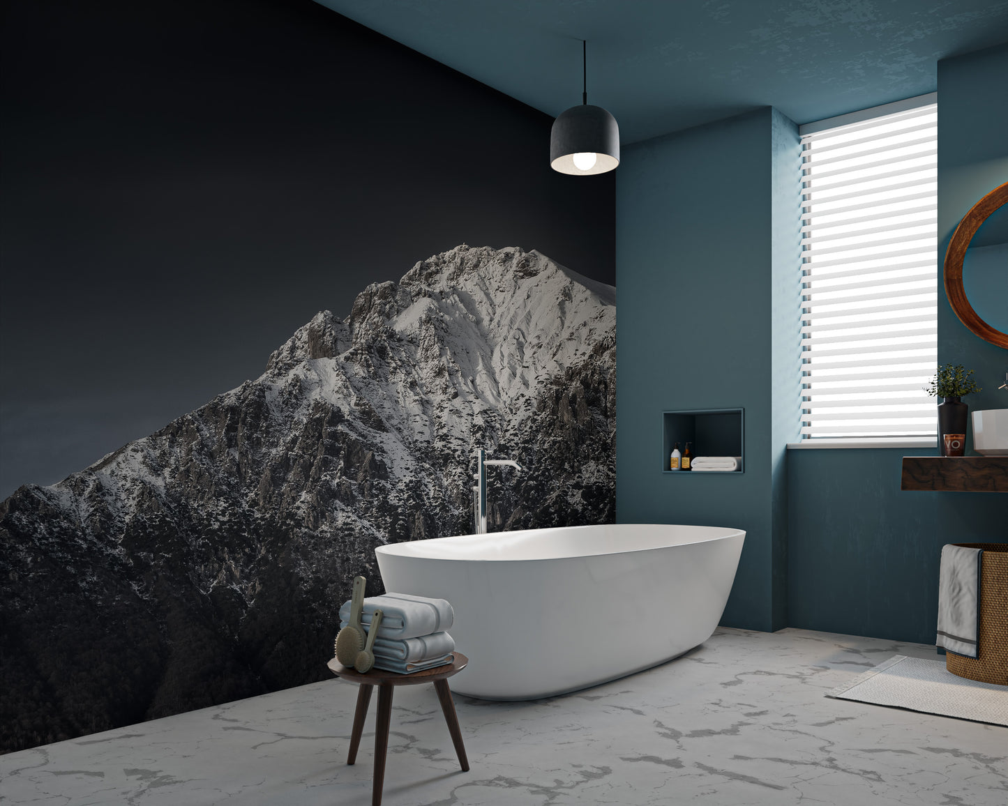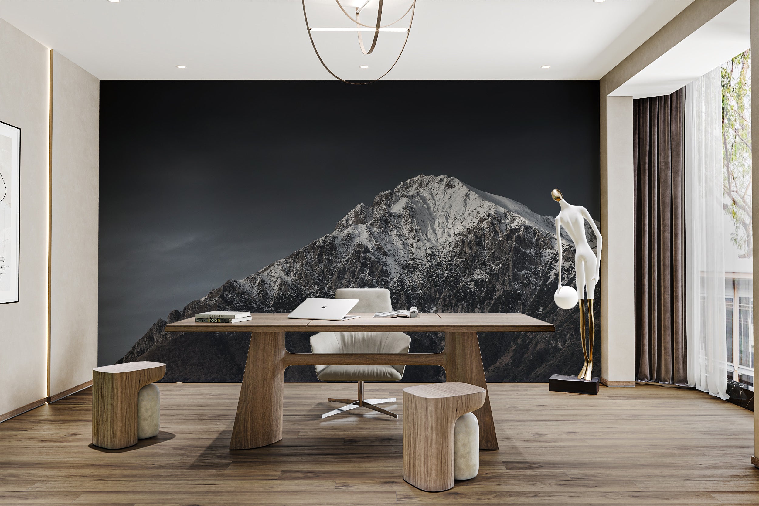 Moody snow-capped mountain mural captures the raw beauty of snow-capped mountains under a dramatic sky. This dark mountain landscape creates a bold and immersive atmosphere, perfect for nature lovers and adventure seekers. This black-and-white mountain photography piece is designed for modern interiors and adds depth and elegance to any room. Whether in a living area or office, its majestic mountain view brings tranquillity and grandeur. Elevate your décor with this epic nature wallpaper, blending sophistication with wilderness charm. Easy to install and durable, this mural ensures a lasting impression with its scenic mountain background appeal.