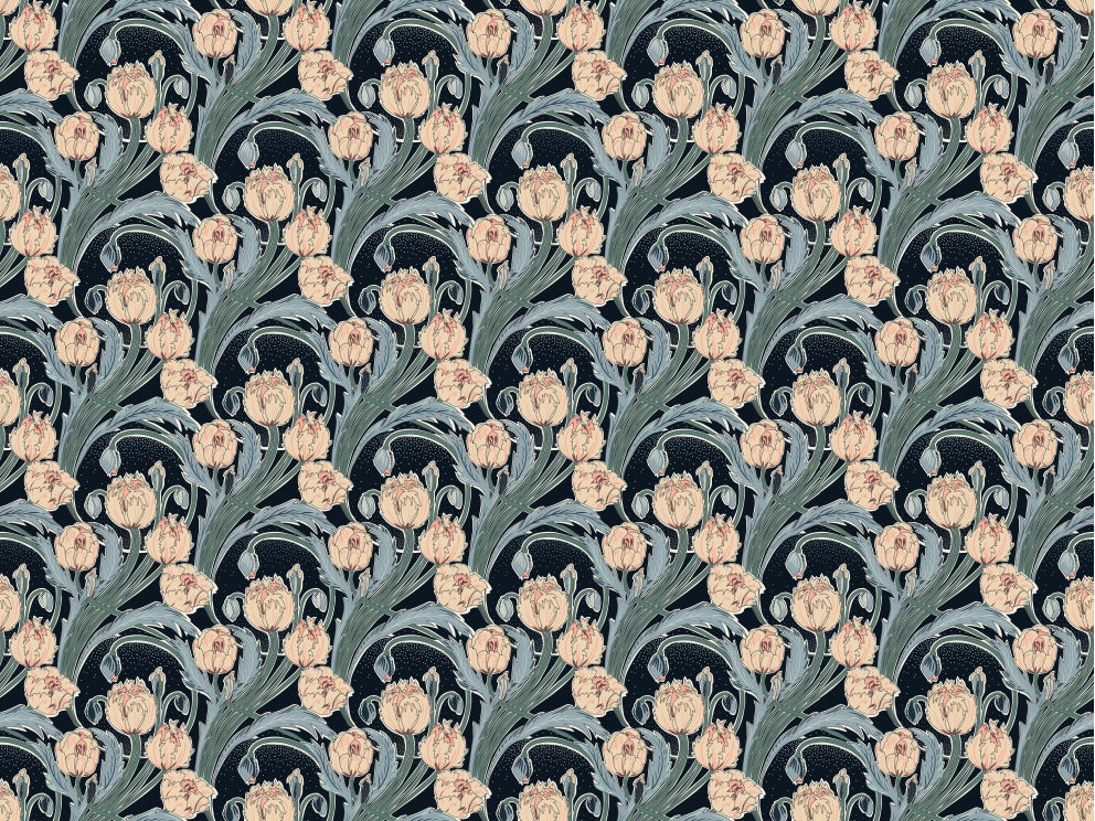 Moonlit Tulip Elegance wallpaper with intricate botanical details.