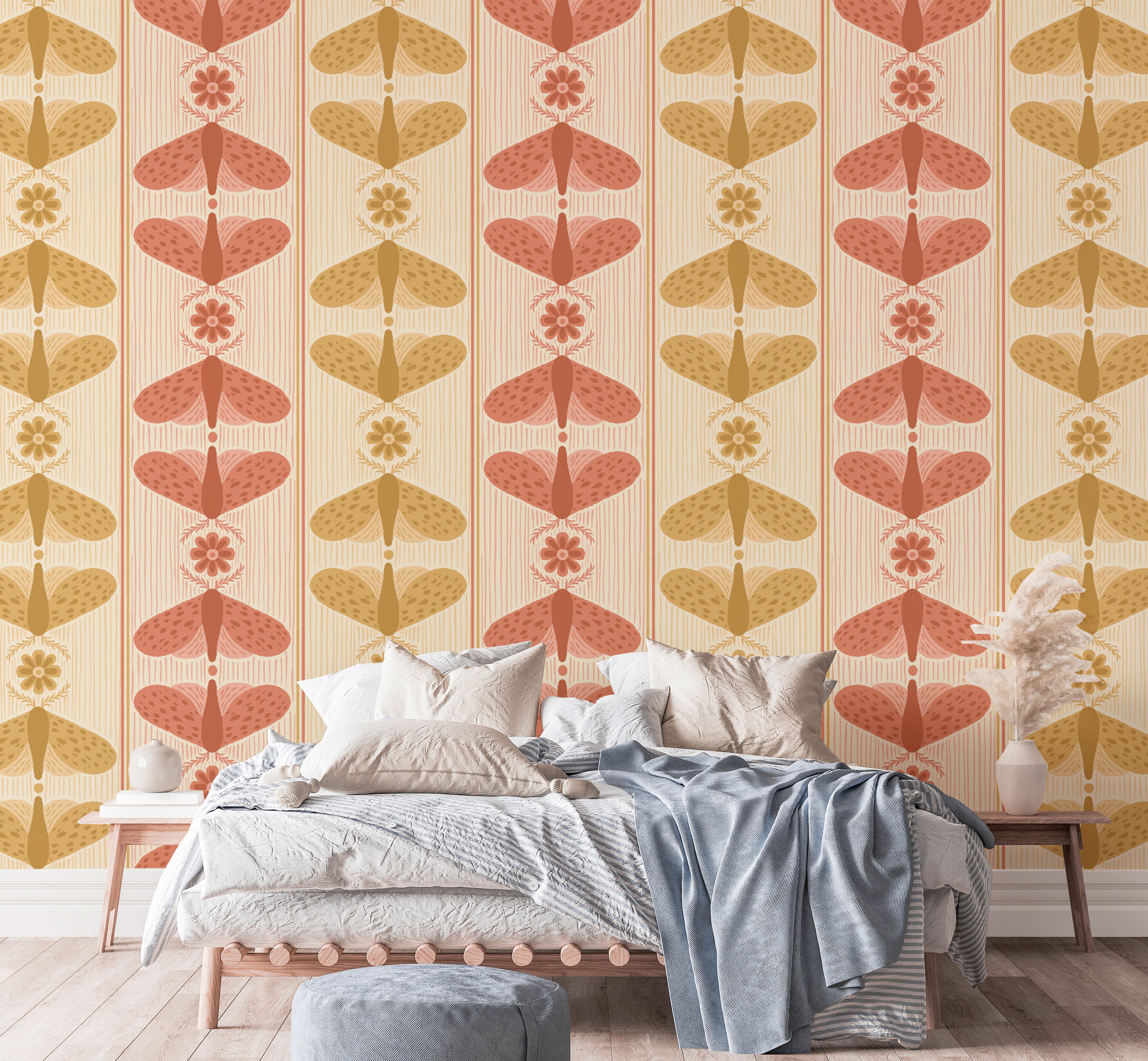 Whimsical moth stripe wallpaper for a playful, nature-inspired touch.