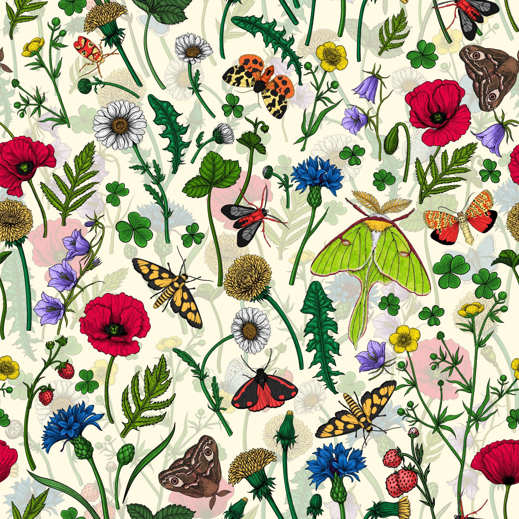 Moths and Wildflowers Wallpaper with soft floral and moth designs