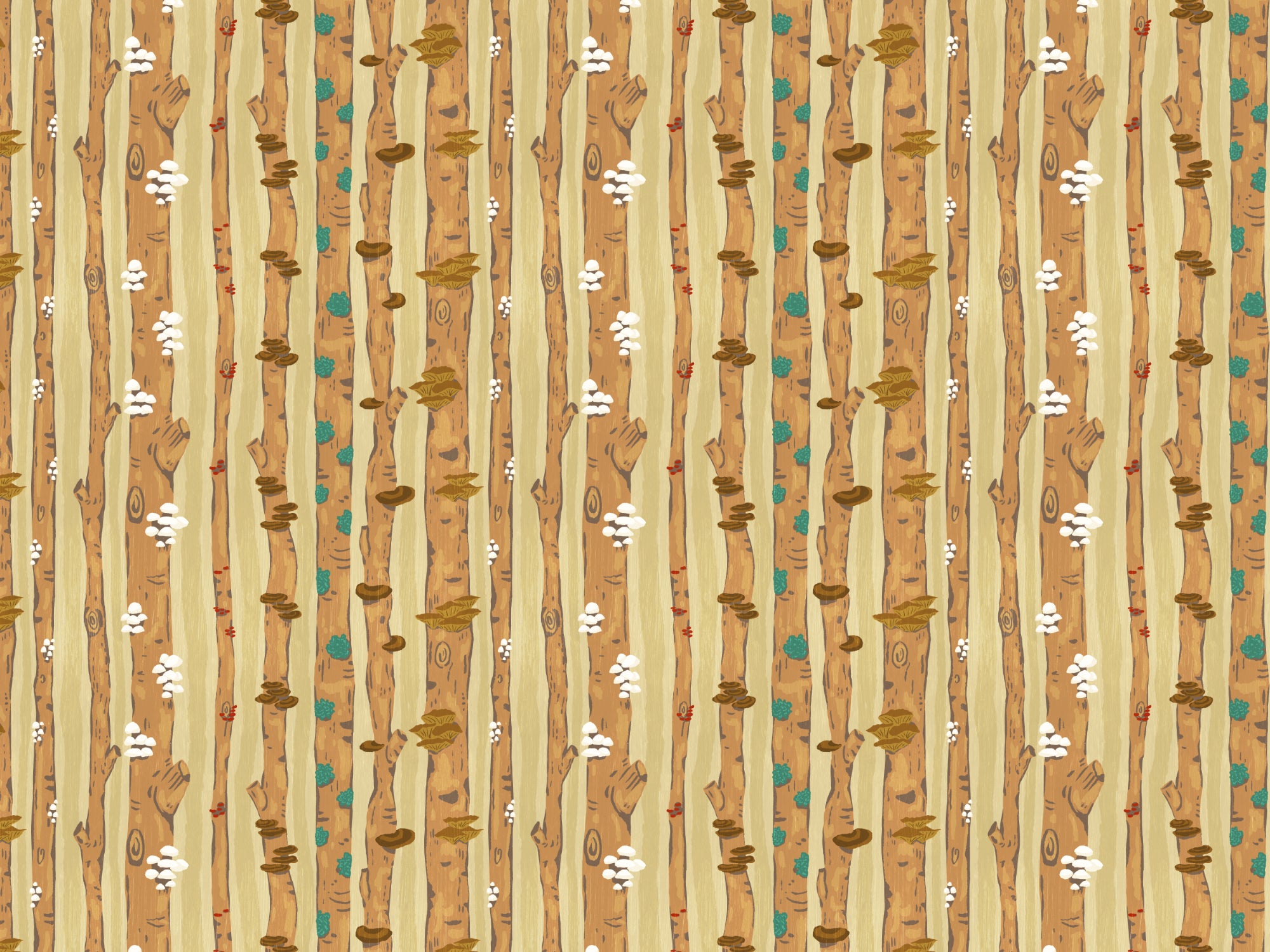 Elegant mushrooms on tree trunks wallpaper for rustic interiors.