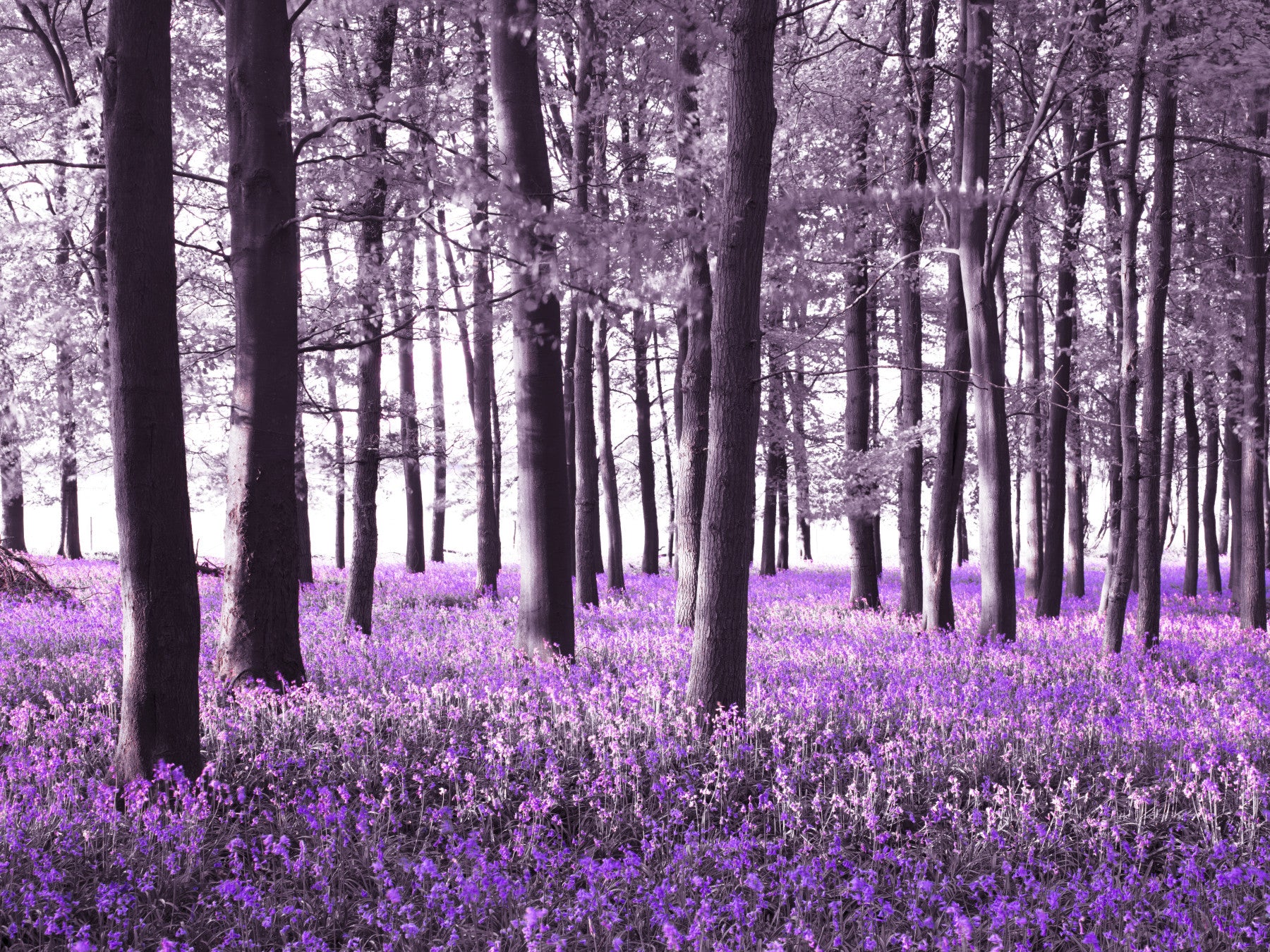 Bluebells covering forest floor. Step into the enchanting and ethereal world of "Mysteries of Bluebell Forest." This captivating wallpaper transports you to a secluded woodland realm, where towering trees stand guard over a breathtaking carpet of vibrant bluebells. Immerse yourself in the depths of this floral wonderland, where dappled sunlight filters through the canopy, casting an otherworldly glow upon the scene. The air is thick with the sweet fragrance of blossoms, and a sense of tranquility pervades the mystical atmosphere. Unravel the secrets hidden within the whispering leaves and the dancing shadows. Let the serene beauty of this bluebell forest inspire your imagination and bring a touch of magic to your everyday life. Discover the hidden wonders that await within this captivating natural sanctuary.