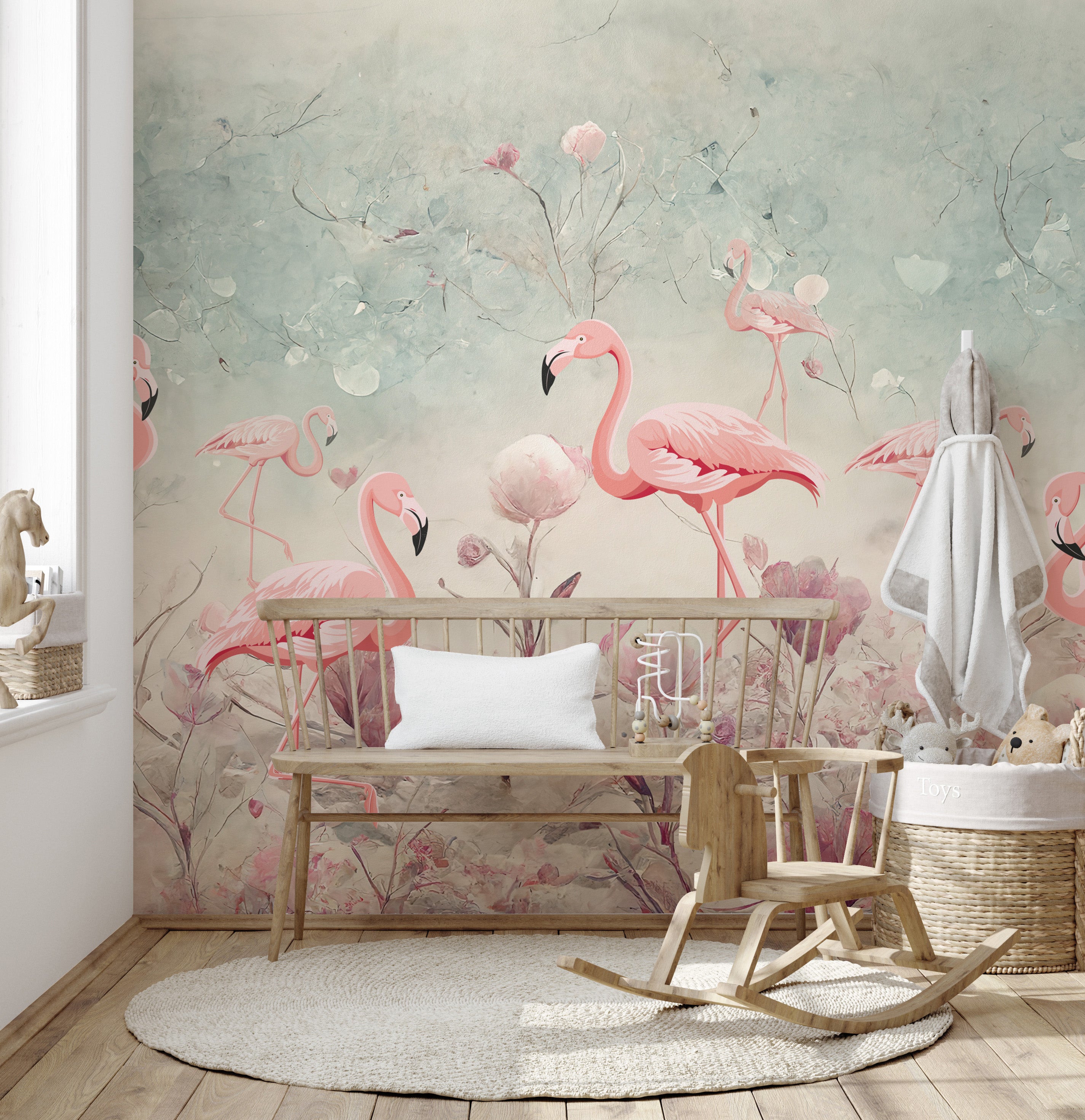 Serene flamingo grove mural perfect for nature-inspired interiors.