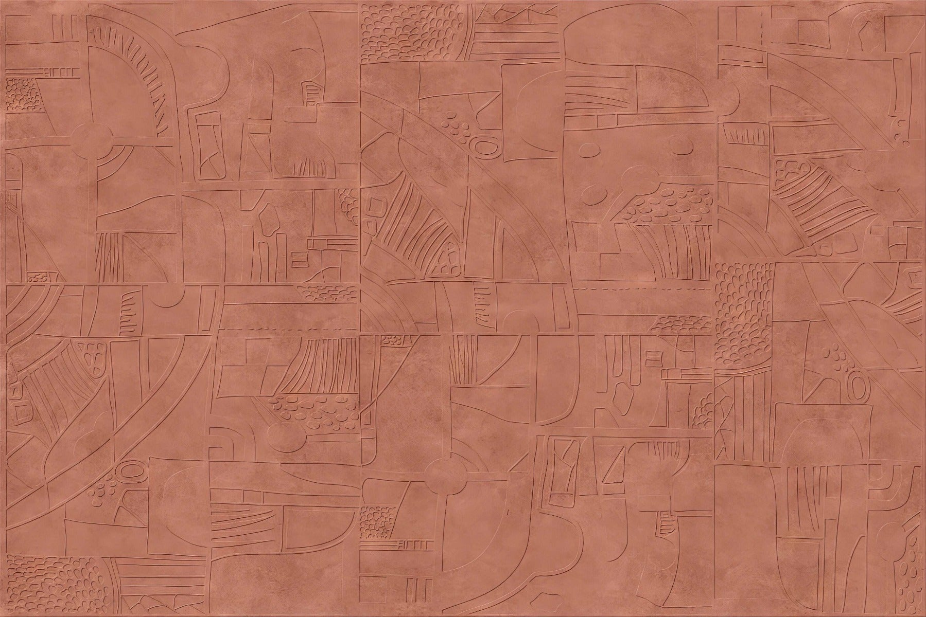 Mystical terracotta mural adding warmth to any space.