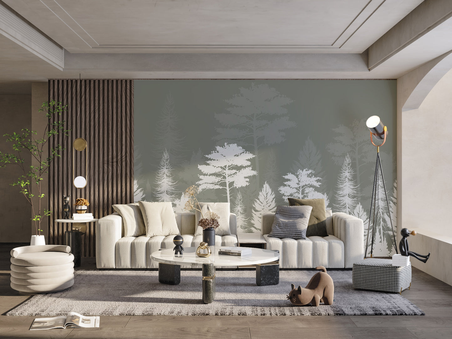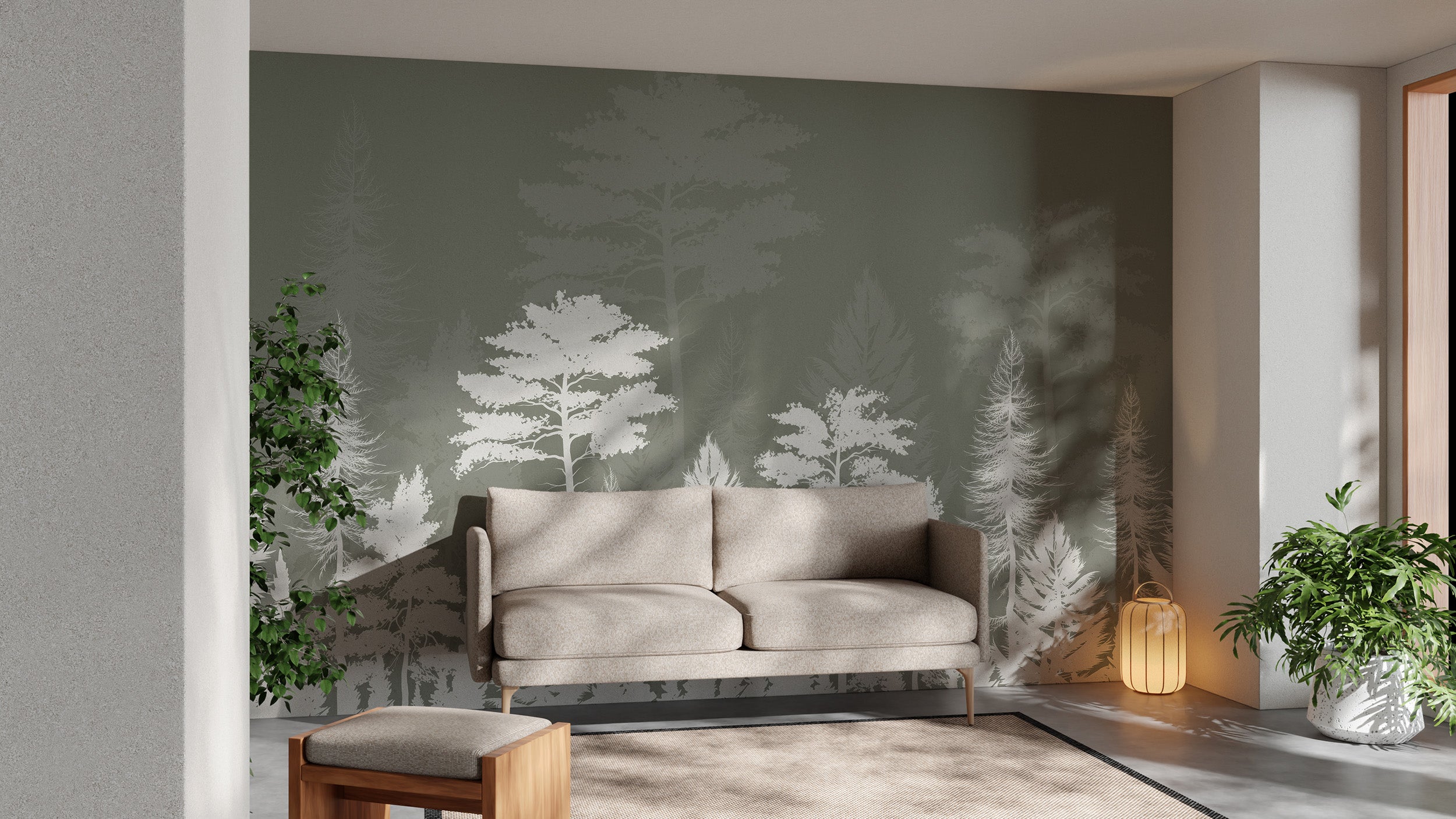 Bring the natural beauty of the forest inside with our mystic wood shadow play wall mural. This meticulously crafted forest wallpaper offers a serene backdrop, perfect for any setting looking for a natural touch. Featuring elegant trees cast in soft shadows against a muted color palette, this mural provides a peaceful, calming view suitable for bedrooms, offices, or living areas. Made from durable materials, it ensures longevity and continued allure. The design captures the essence of a mystic forest, making it an ideal choice for those who appreciate the tranquility of nature. Enjoy the calming effect it brings to your environment and the visual interest it adds to your space.