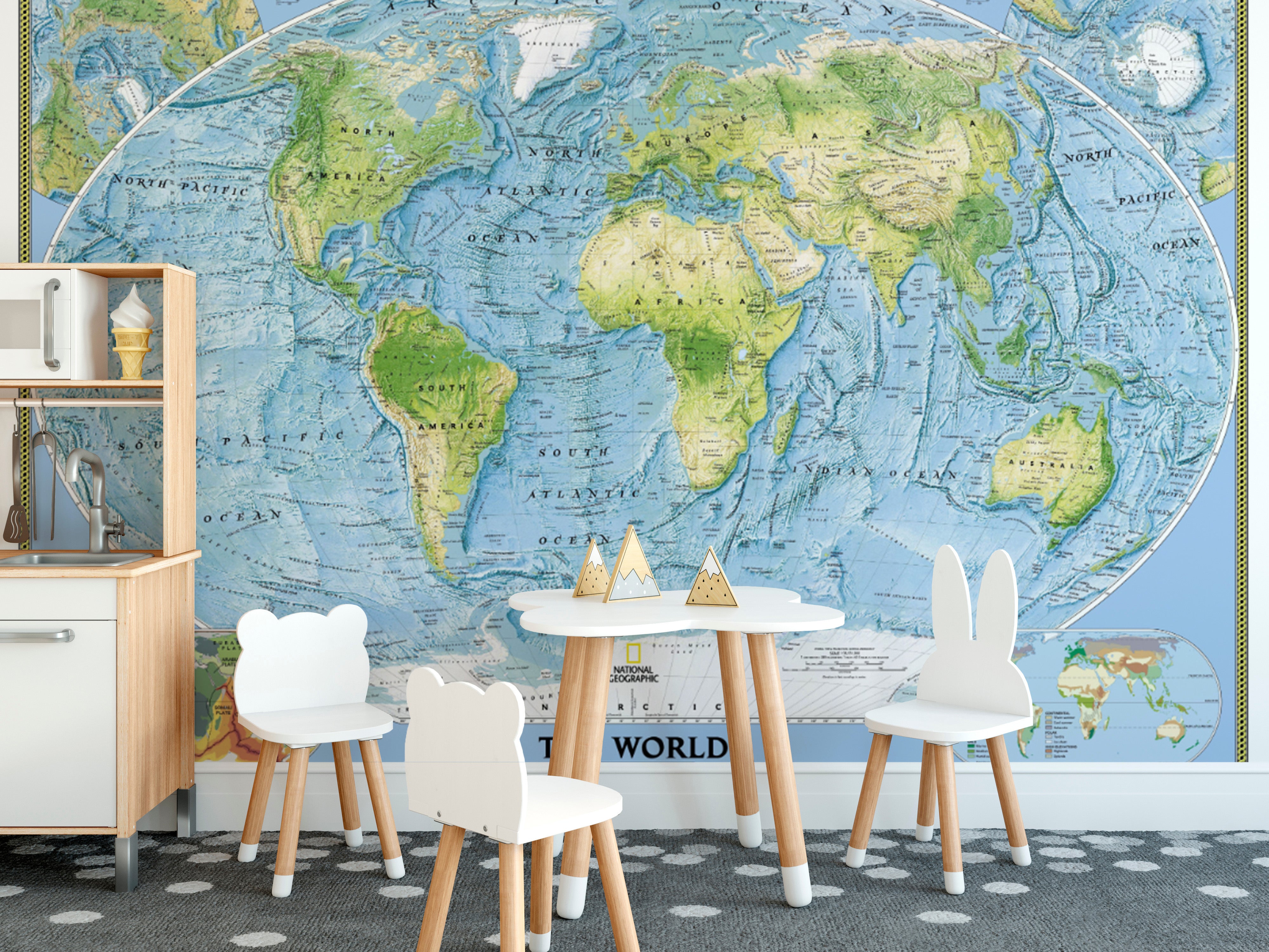 Educational physical world map for classrooms