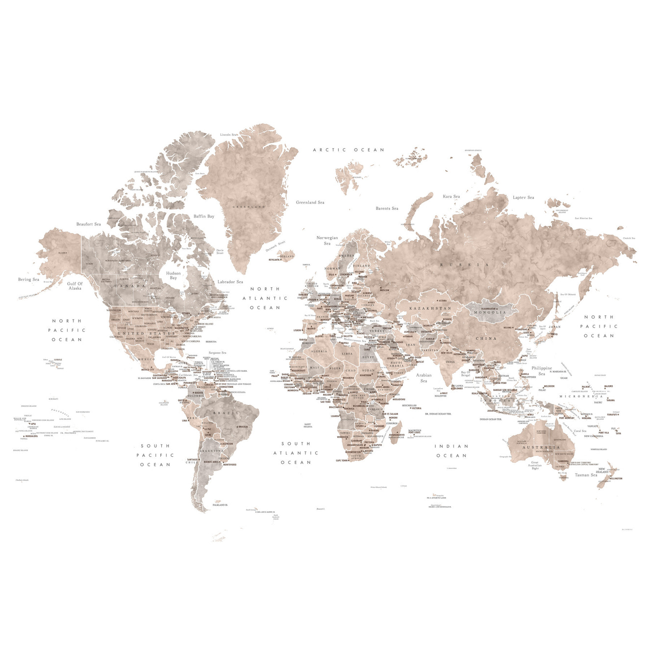 High-resolution geographical features world map