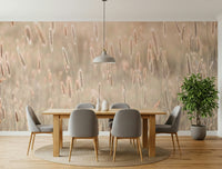 Summer meadow. Transform your space into a sun-drenched meadow with this delicate wallpaper. Featuring detailed depictions of slender grasses in muted pink tones, this design brings organic softness to your interior. The diffused light in the composition adds depth. Use this wallpaper for walls to create a soothing backdrop in your bedroom, bathroom, or hallway. The design works well with natural materials and enhances spaces with a subtle, refined elegance.