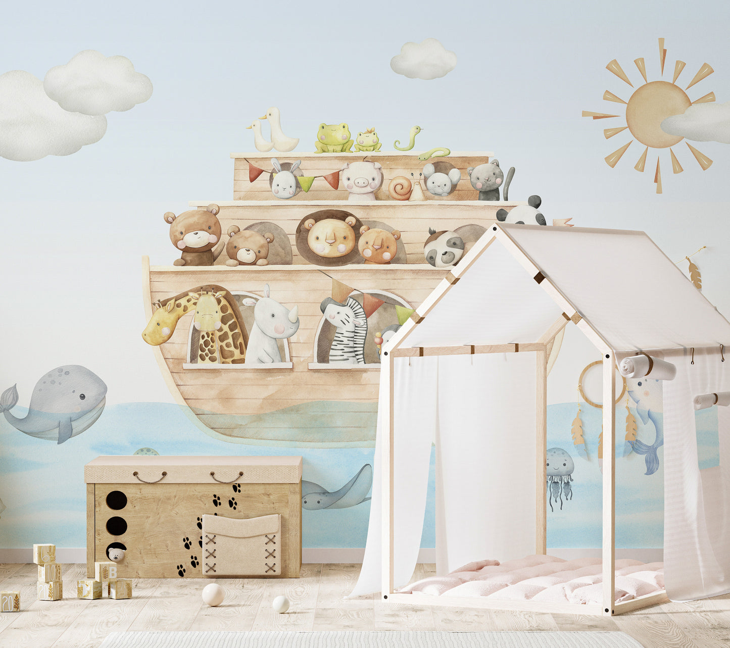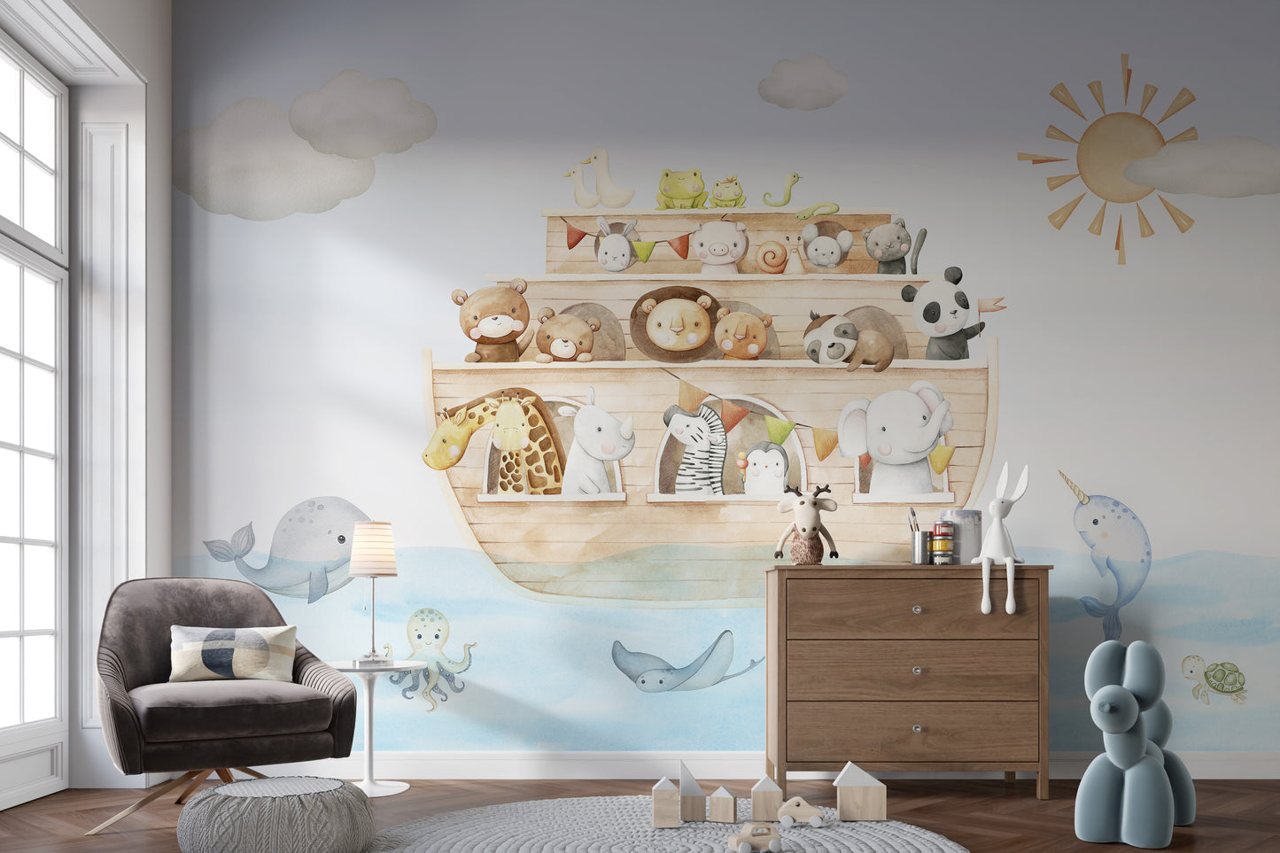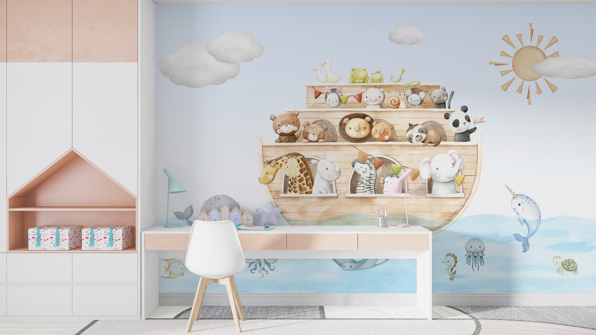 Nautical animal mural for childrens bedrooms