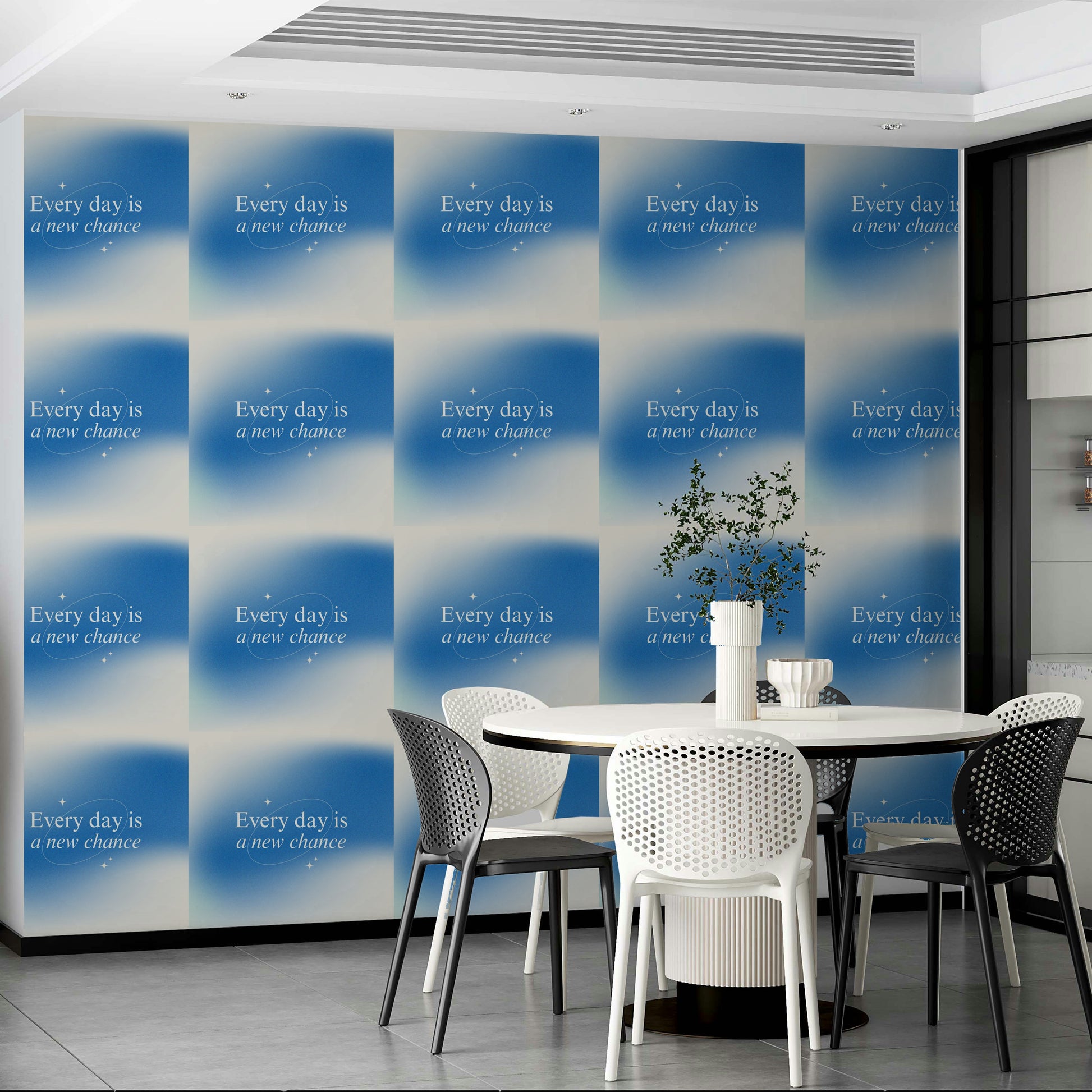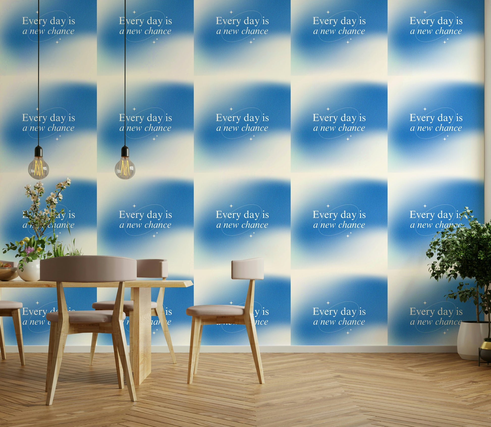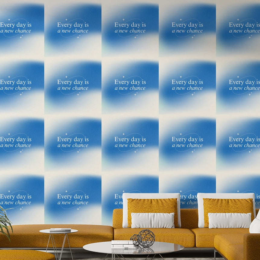 Embrace the serenity of a brand new day with this calming wallpaper. A soft, gradient blue sky, reminiscent of a hopeful dawn, forms the backdrop for the inspiring message: 'Every day is a new chance'. Delicate, sparkling stars add a touch of magic, enhancing the feeling of fresh beginnings and limitless possibilities. This minimalist design is perfect for those seeking a peaceful and motivating start to each day, promoting positivity and the pursuit of dreams. The subtle color palette and clean typography create a tranquil atmosphere, ideal for a desktop or mobile screen.
