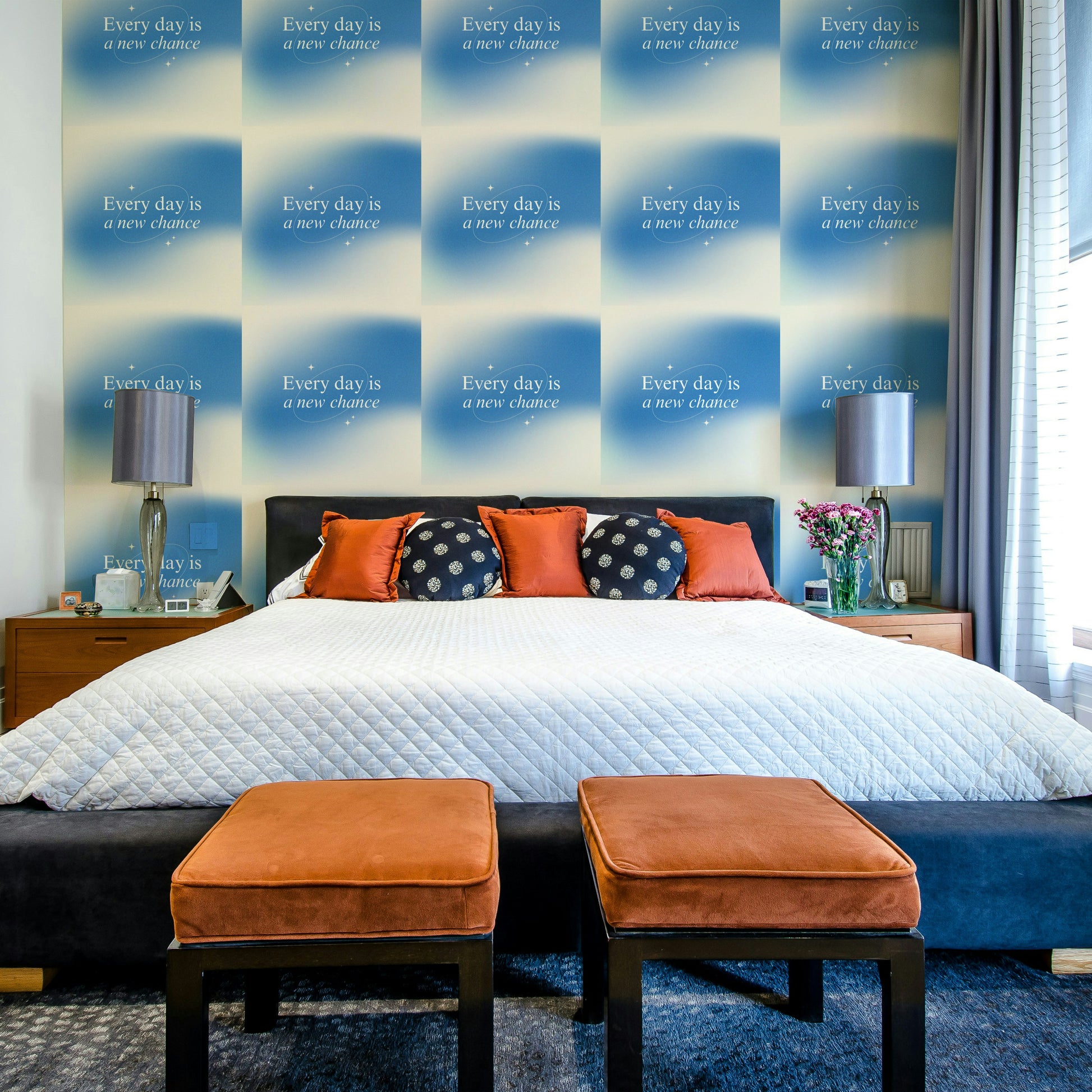 Start by prepping the wall, making sure it's clean and smooth. Unroll your peel and stick wallpaper, measure, and cut it to fit. Gradually peel off the backing and align the wallpaper with the top of the wall. Press from the center outward to smooth it down. Trim any excess, and enjoy your refreshed space!