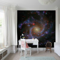 Dive into the mesmerising beauty of a distant galaxy with this stunning wallpaper for walls. Its swirling patterns of blue and red hues against a dark backdrop creates a sense of depth and wonder. Perfect for adding drama to a living room, creating a captivating feature wall in a bedroom, or sparking curiosity in a study. This design enhances modern interiors with its cosmic theme, infusing a sense of the infinite into your personal space. Let this galaxy transform your room into a celestial haven.