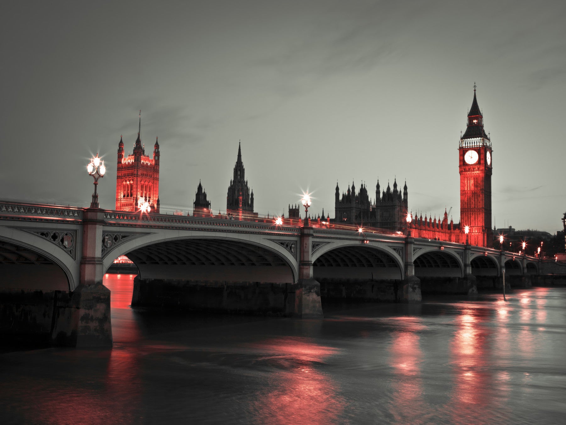 Westminster Bridge at night in London. Step into a realm of 'Night Magic' with this breathtaking wall décor. A majestic cityscape is bathed in an ethereal glow, casting an enchanting spell upon any room. The iconic architecture rises against the dusky twilight, its details rendered with a captivating monochromatic palette punctuated by striking, vibrant hues. The subtle interplay of light and shadow dances across the tranquil waters below, creating a mesmerising reflection that draws the eye deeper into the scene. The romantic glow evokes a sense of wonder and serenity, transforming your space into a sanctuary of sophistication. Infuse your living room, bedroom, or office with a touch of urban mystique and timeless elegance.
