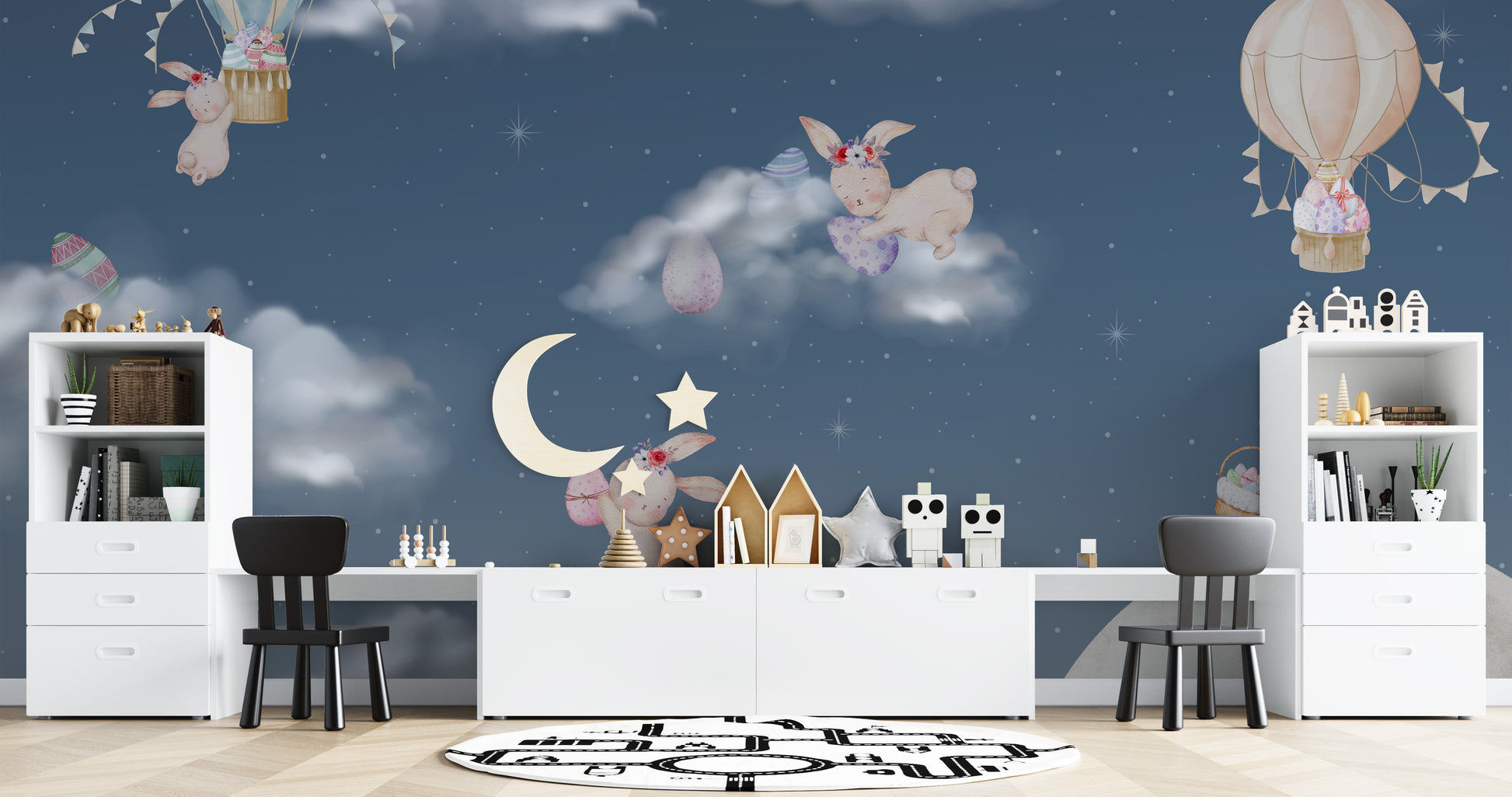 Looking for a soft and dreamy Easter wallpaper for your child’s room or a small space? This Night Sky Bunny Easter Wallpaper is a perfect choice. It has cute bunnies, pastel Easter eggs, and gentle clouds floating in a night sky. It’s a peel and stick wallpaper that’s easy to apply, removable, and safe for renters. Whether you want Easter wallpaper for a nursery, fun bunny wallpaper for Easter, or something sweet for kids’ walls, this one brings a calm springtime feel. It’s great for anyone decorating for Easter in a simple and stylish way.