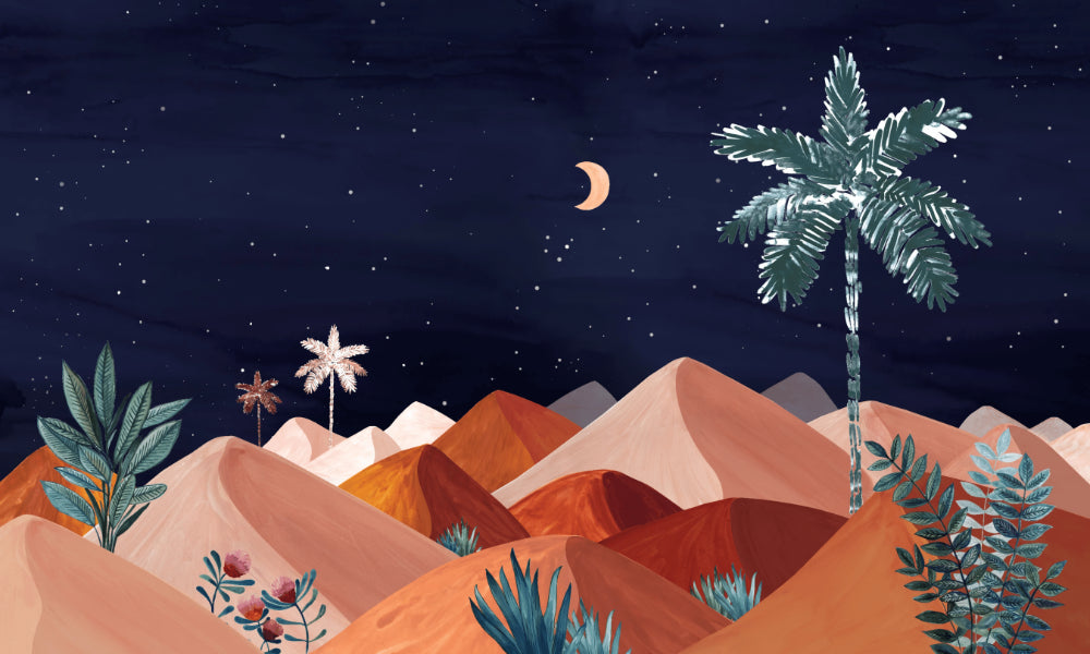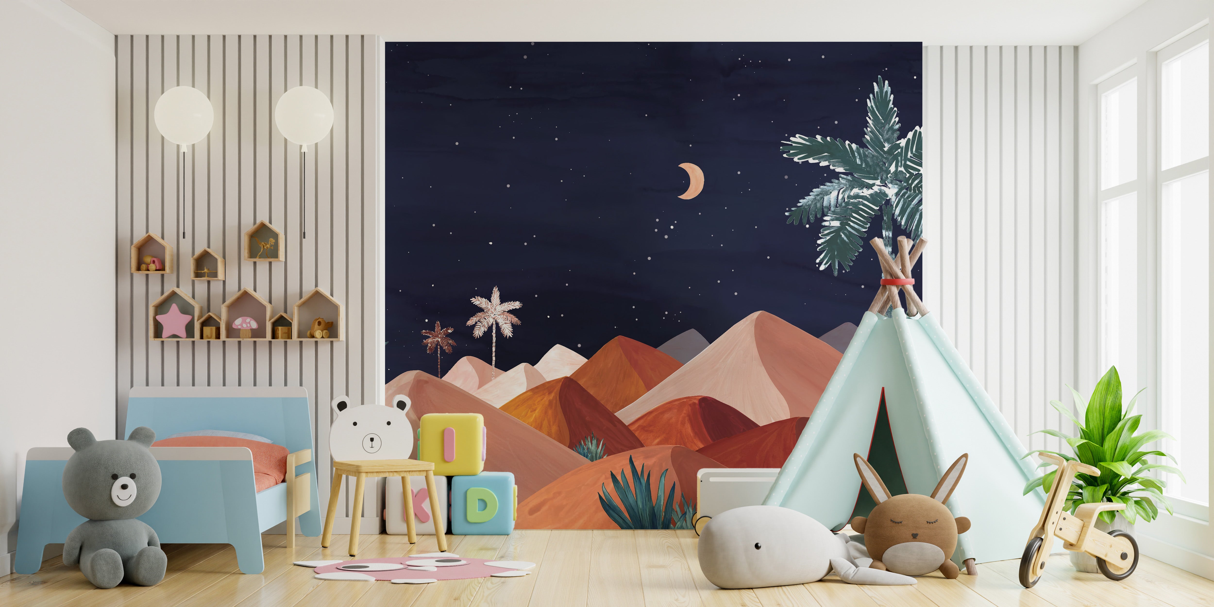 Behold the serene splendor of our night time oasis wall mural, capturing the majestic mountains under moonlight. This piece, void of common decor terms, offers a unique visual retreat. Envision resting in a space where moonlit peaks whisper stories of ancient wisdom and nature's undisturbed peace. This mountains wall mural transforms walls into gateways to natural wonders, promising a calm yet striking backdrop. Ideal for lovers of the outdoors seeking a subtle touch of nature's night-time allure in their habitat.