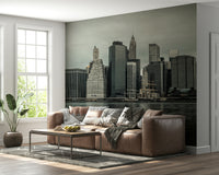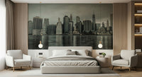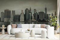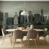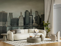 Lower Manhattan skyline, New York. Enhance your walls with this breathtaking panorama of the New York City skyline. This wallpaper for walls brings the energy and sophistication of Manhattan into your home. The neutral colour palette makes it a versatile choice for various interior styles, from minimalist to modern. This design accentuates living rooms, bedrooms, and even home offices. The water's reflection adds depth and visual interest, crafting an immersive experience. Elevate your décor with this iconic cityscape.