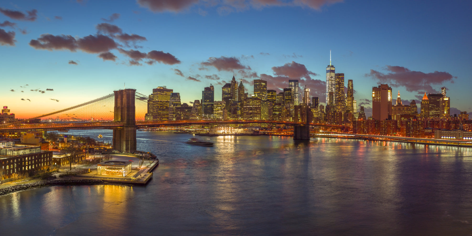 Transform your room with the dazzling glow of New York City at twilight. This wallpaper for walls presents a breathtaking view of the city skyline and Brooklyn Bridge, awash in warm lights and cool blues. The detailed design offers a lively, urban feel, ideal for modern homes. This wallpaper complements interiors with sleek lines and contemporary decor. Imagine this gracing your living room, bedroom, or home office. The iconic bridge and twinkling city lights will create a visually stunning focal point, infusing your space with the vibrant spirit of NYC. Bring the city to you!