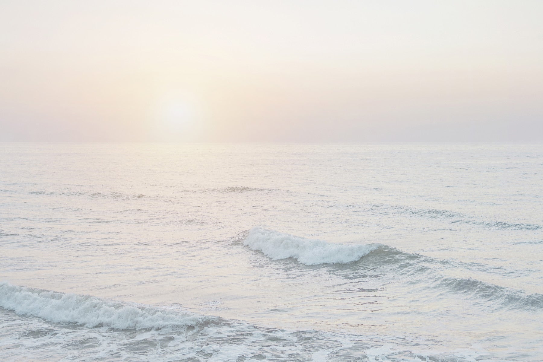 Transform your space with this ethereal design, perfect as wallpaper for walls, capturing the delicate moment when the sun kisses the ocean. Its soft blend of peach and light blue promotes relaxation and a sense of well-being. Imagine this scene bringing peacefulness to your bedroom or a touch of serenity to a home office. This wallpaper lends itself beautifully to modern interiors, providing a subtle statement without overwhelming the senses.