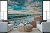 Infuse your interiors with the serene beauty of 'Ocean Hues'. This wallpaper for walls presents a captivating coastal scene, featuring azure waves and a radiant, golden sunrise. The harmonious blend of cool blues and warm golds creates a calming and inviting ambience, ideally suited for bedrooms, bathrooms, or relaxation spaces. With its dynamic composition and tranquil subject matter, it adds depth and an artistic touch to any room. This design elevates your décor with a sophisticated seascape, transforming your walls into a window to the ocean's beauty.