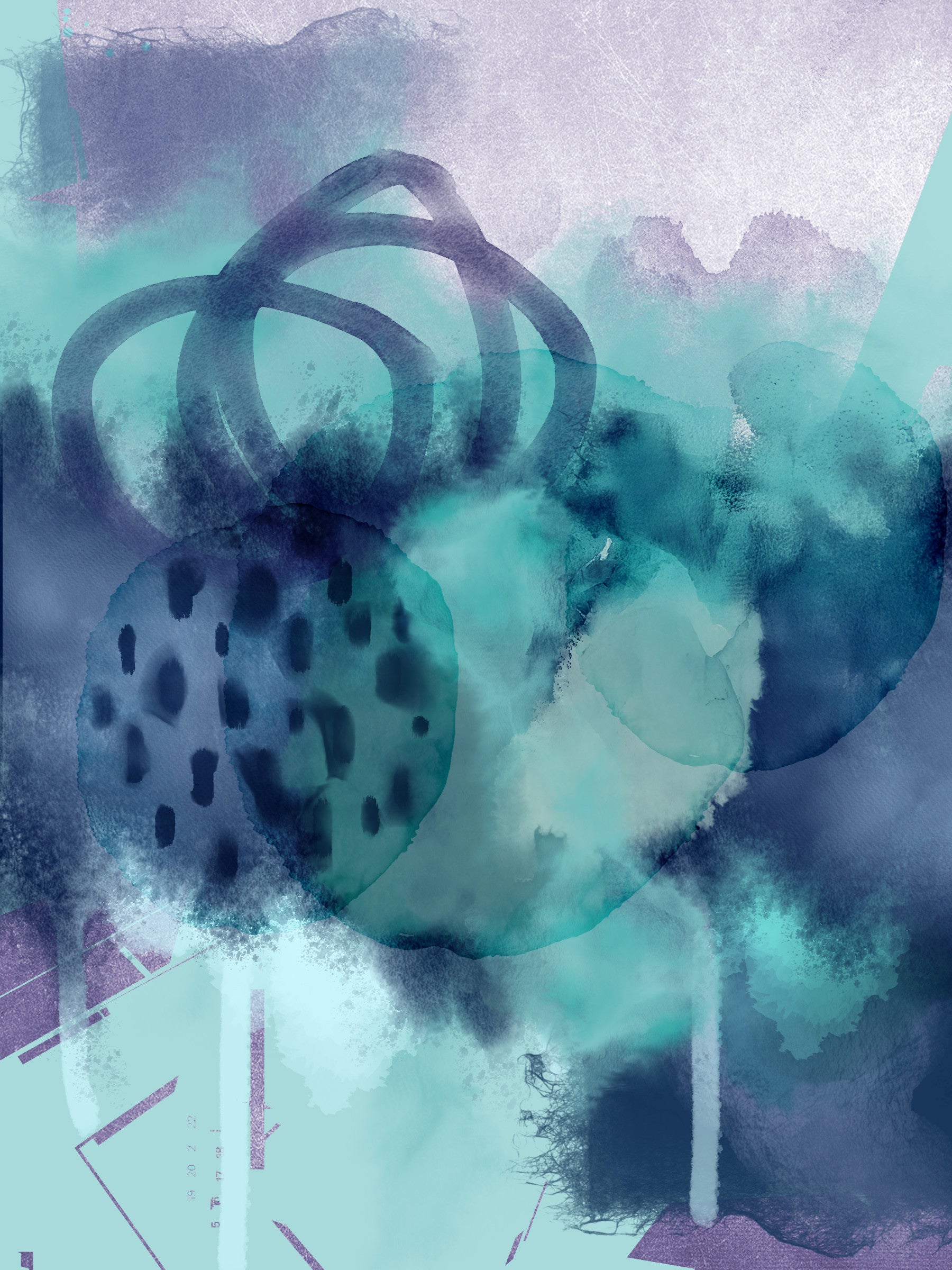 Dive into a world of tranquil beauty with this mesmerising abstract wallpaper. The soft teal and deep blue shades evoke the calming depths of the ocean, while the organic shapes and flowing brushstrokes mimic the movement of waves. Subdued purple accents add a mysterious touch, reminiscent of underwater light. The subtle texture and delicate blending of colours create a serene and inviting atmosphere, making it perfect for bedrooms, bathrooms, or any space where a sense of peace and relaxation is desired. The wallpaper's abstract nature allows for versatile use in various decorating styles.