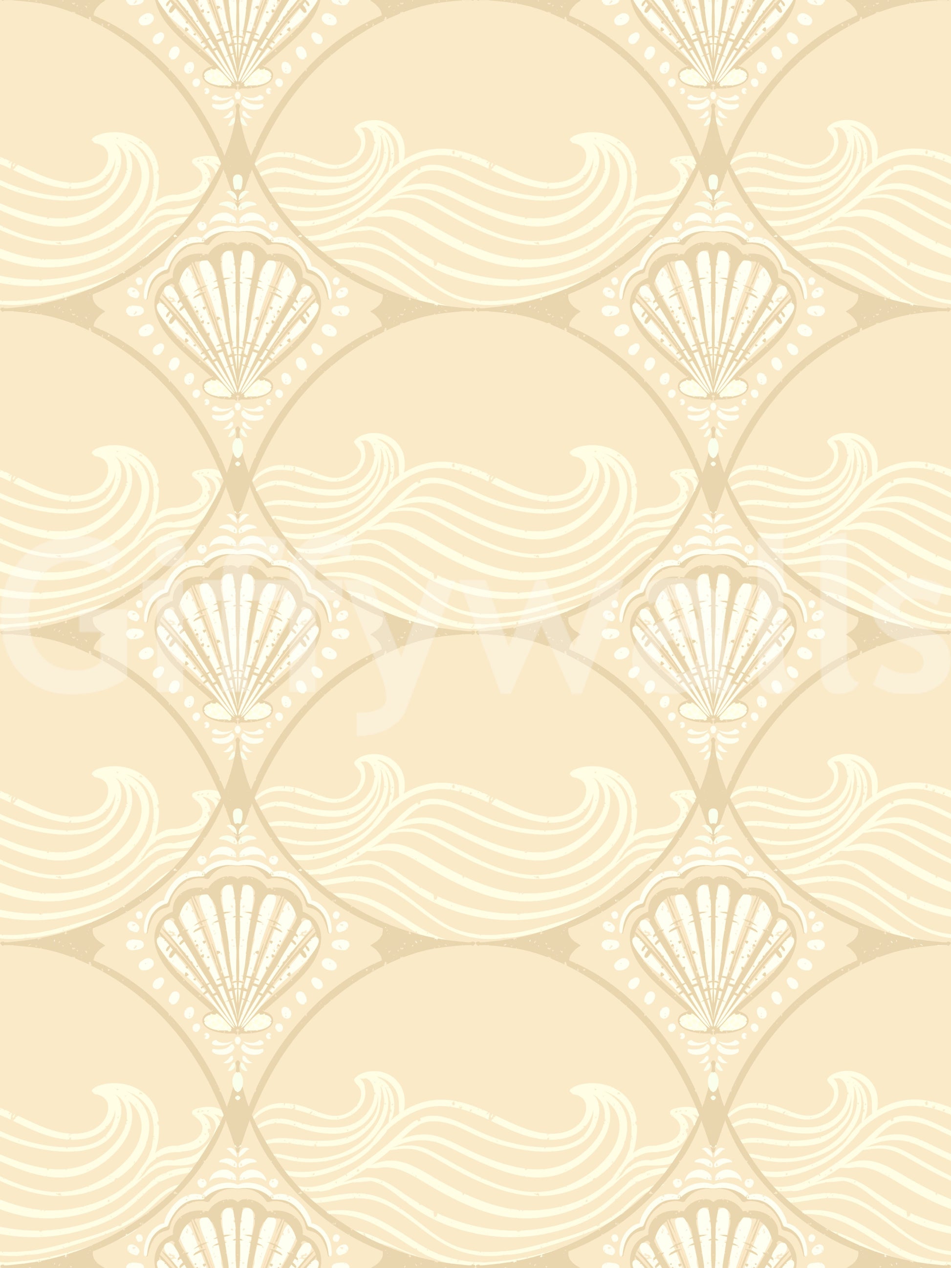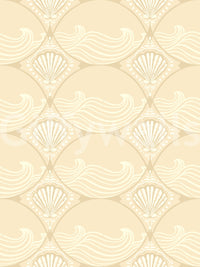 Transform your interiors with this captivating wallpaper for walls. It features an exquisite ogee pattern, gracefully framing stylized shells and gentle, flowing waves. This design evokes a sophisticated Art Deco aesthetic with a subtle vintage charm. The serene beige and creamy off-white palette creates a warm, inviting atmosphere. Install this elegant pattern in a living room, bedroom, or dining area to infuse timeless coastal elegance. It also brightens bathrooms and entryways, making any space feel more refined and spacious. The unique design adds visual interest and a tranquil ambiance, enhancing your home with its understated luxury.