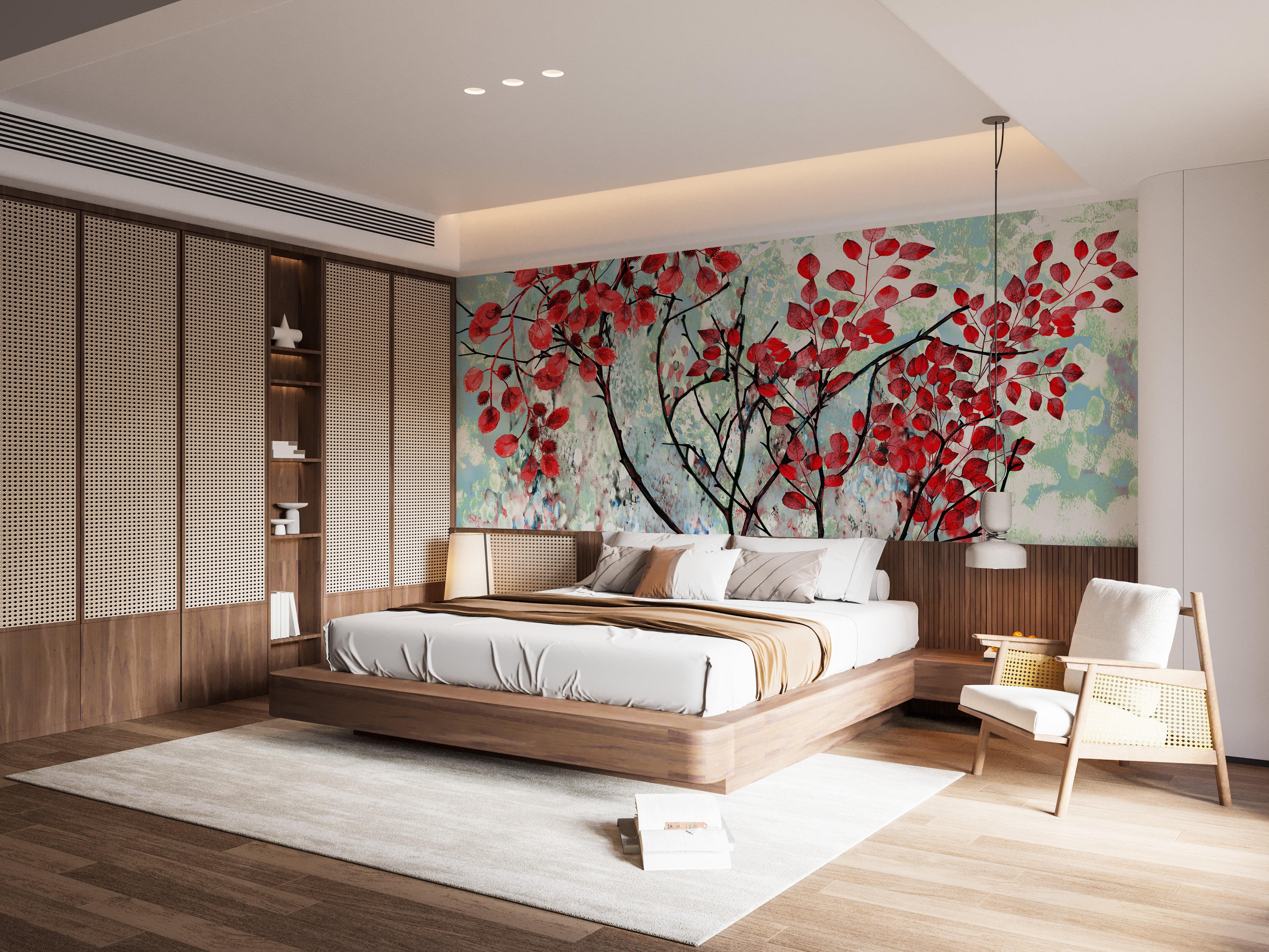 Elevate your living room's ambiance with our oil painted red leaf mural wallpaper. This exquisite wall covering is a celebration of nature's beauty, bringing the serene charm of autumn indoors. The vibrant red wallpaper is adorned with richly detailed leaves, creating a focal point that is both bold and elegant. The mural's texture and depth add a tactile dimension to your walls, making it more than just a visual delight. Perfect for those who appreciate the finer details, this leaves wallpaper infuses your living space with warmth and sophistication. Easy to install and maintain, it's a practical choice for anyone looking to add a touch of artistry to their home. Create a statement wall that speaks volumes about your personal style with this stunning design.