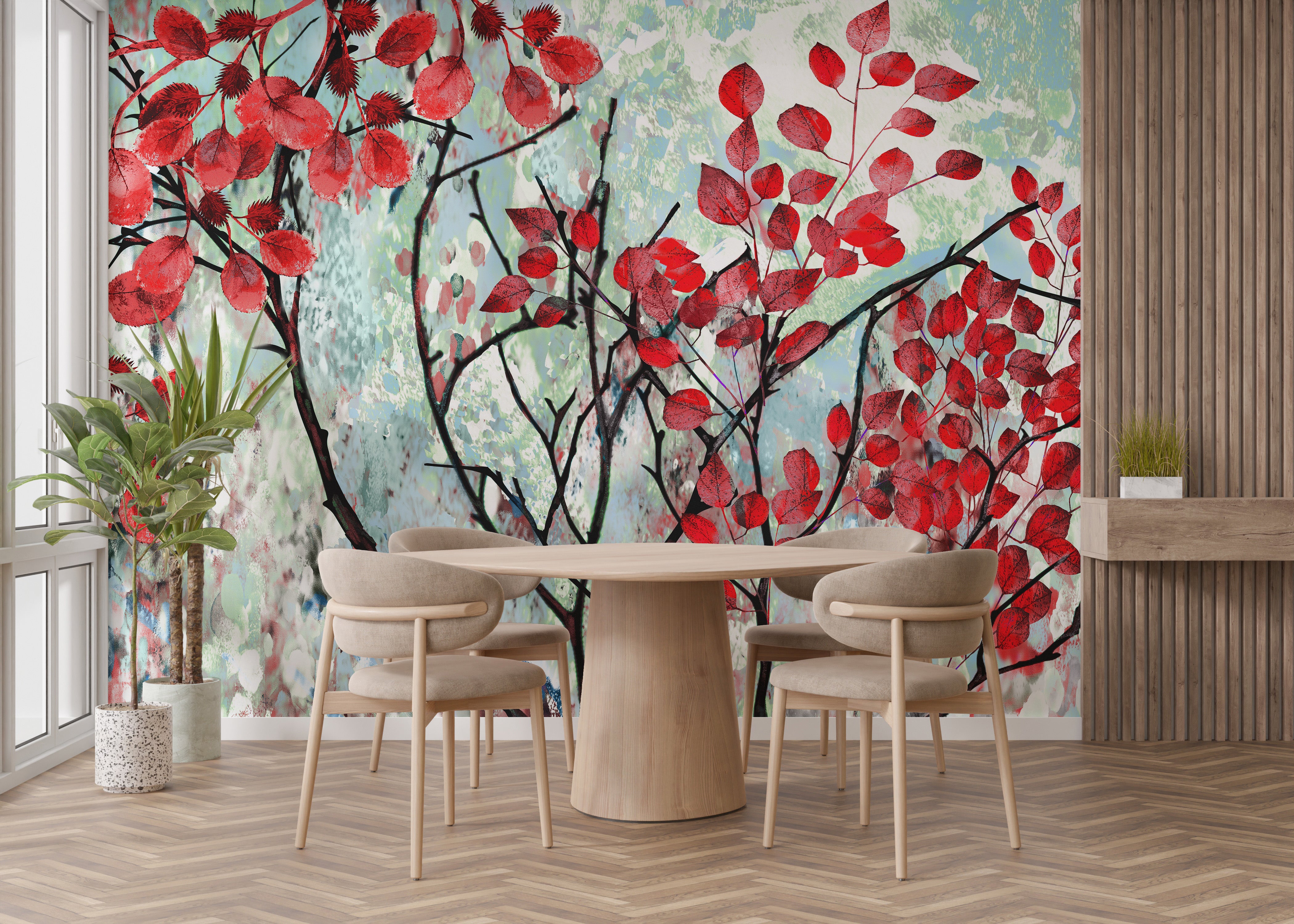 Oil Painted Red Leaves Wallpaper Murals - Giffywalls
