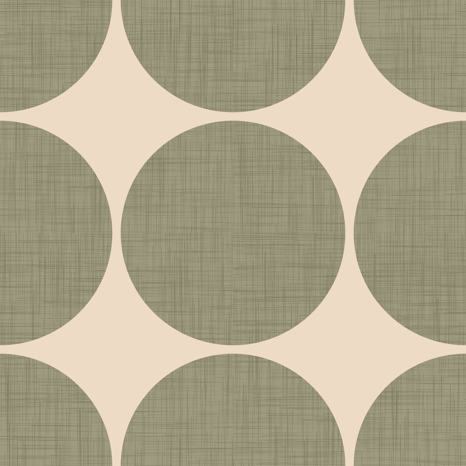Light neutral wallpaper with oversized olive round shapes arranged in rows and columns