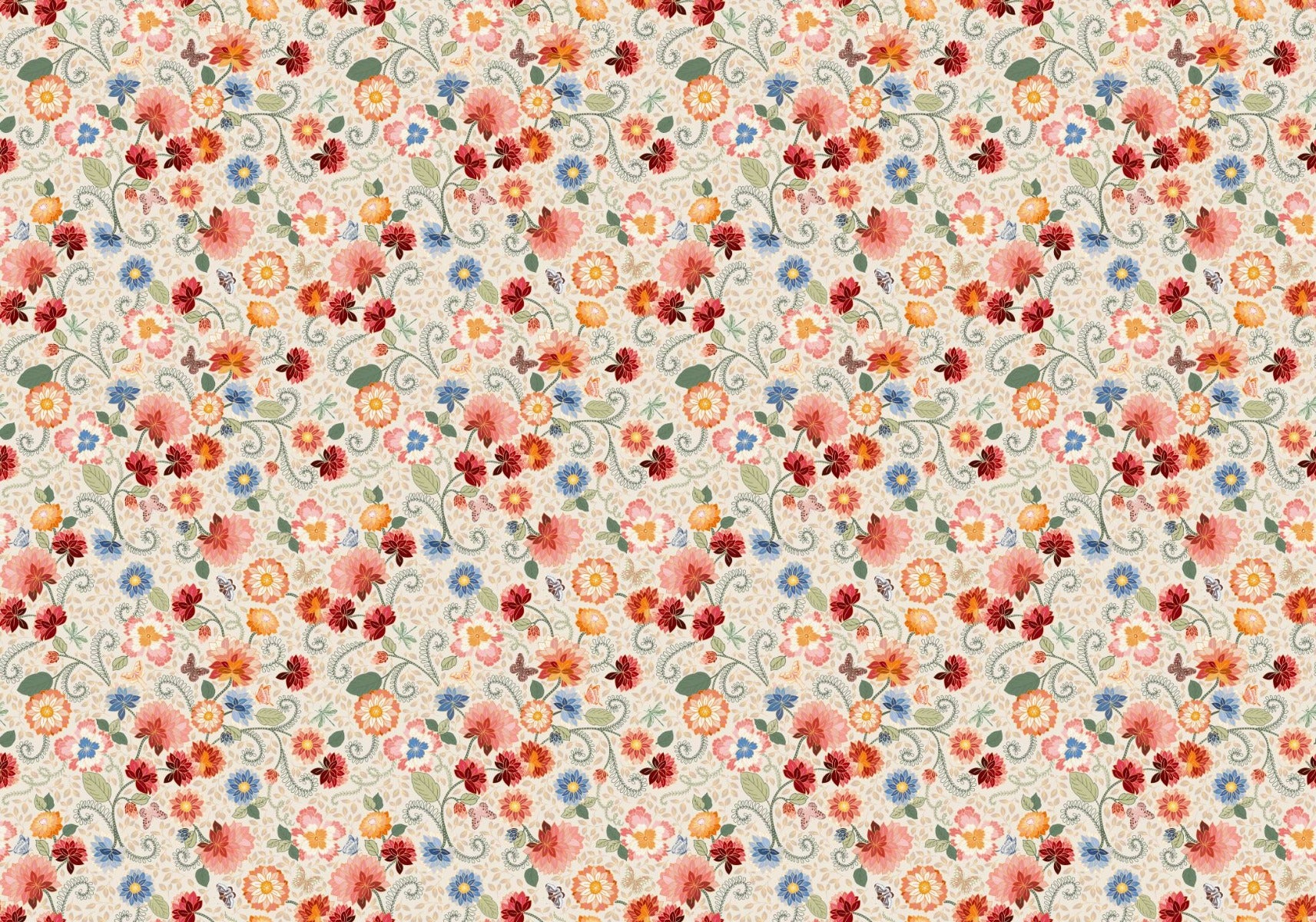 Ornate Floral Mosaic Wallpaper