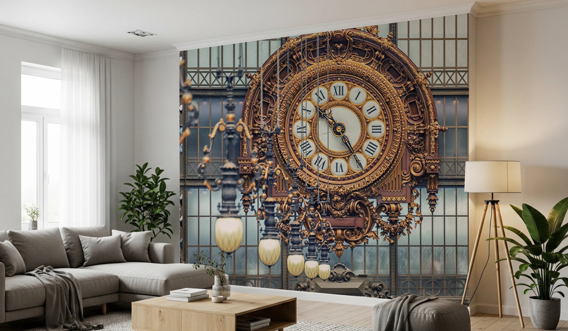 Adorn your space with the timeless elegance of the "Orsay Clock". This wall décor piece captures the grandeur of a bygone era, evoking a sense of Parisian sophistication and artistic heritage. The focal point is a beautifully detailed, ornate clock face, finished in rich, warm golds and browns, its Roman numerals whispering stories of history and artistry. The clock is framed by a backdrop of architectural ironwork and soft, diffused light, enhancing the overall vintage aesthetic. Delicate chandeliers add depth and a touch of romanticism, creating a captivating visual tapestry that transforms any room into a sophisticated gallery. Introduce a touch of historical splendour with this wall décor, a perfect homage to the magnificent Musée d'Orsay, offering a subtle yet stunning statement in any setting, allowing for a distinguished and refined atmosphere.