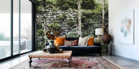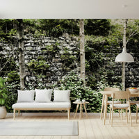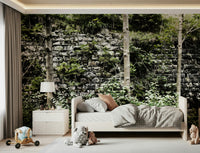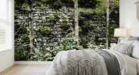 Overgrown Serenity: Nature's Embrace of Abandoned Stone Walls Wall Mural