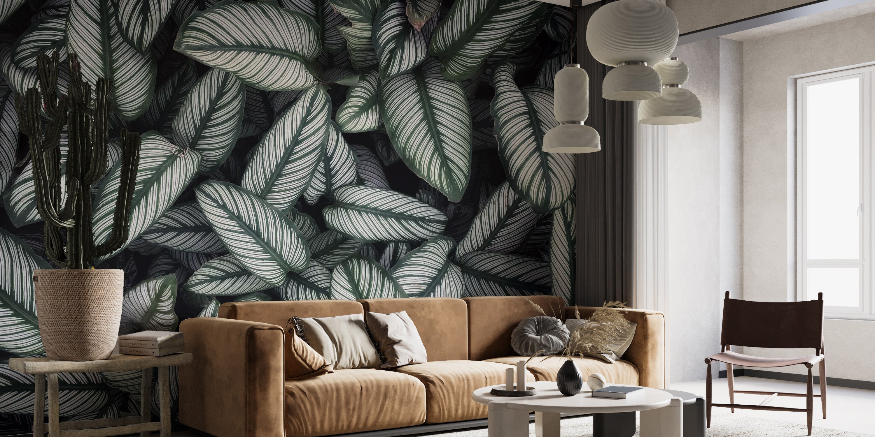 Elegant Green White Leaves Wallpaper Mural for modern spaces