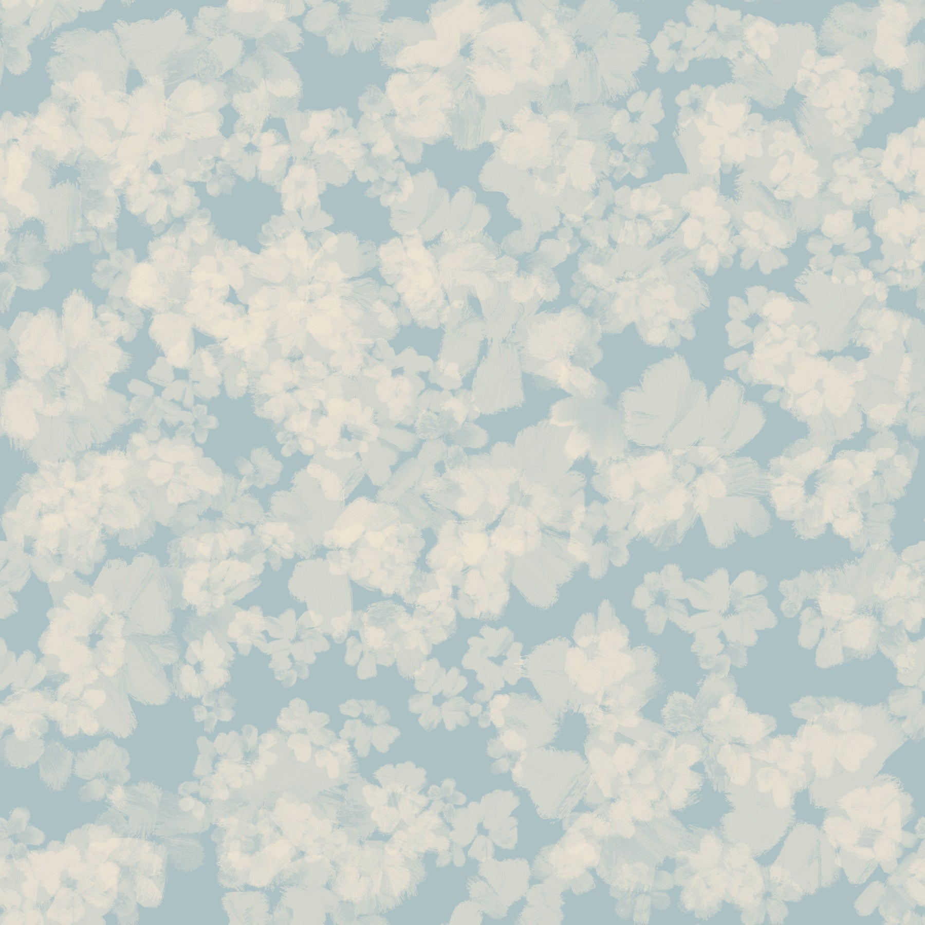 Pale sky blue blossom wallpaper for soothing room aesthetic, Painted Petals Calm.