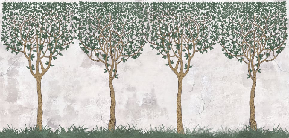 Green Painted Trees Concrete Wall Paper Murals - Giffywalls
