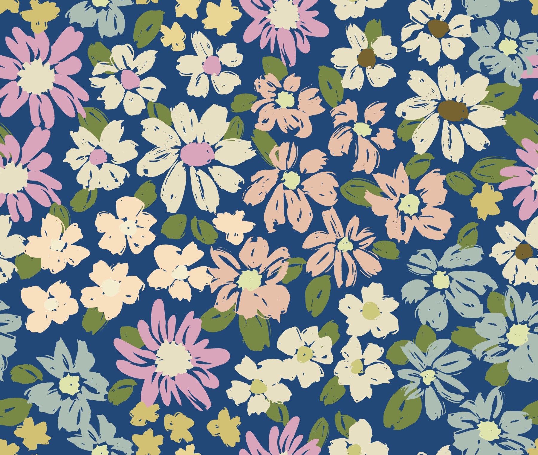 Adorn your home with the artistic charm of our Painterly Cottage Chic Farmhouse Florals Wallpaper. This delightful mural wallpaper features a captivating floral design, rendered with a beautiful, hand-painted effect, perfect for cultivating a cozy, romantic, and inviting farmhouse aesthetic. The flowers are depicted in various shades of blush pink, pale cream/off-white, light blue-grey, and hints of pale yellow-green, set against a rich and serene dark blue background with olive green leaves. It's an ideal wallpaper for walls to introduce unique character and serene beauty to any room. Its soft, expressive brushstrokes and charming color palette offer a captivating backdrop, ensuring your home feels both artistic and beautifully connected to the charm of a rustic garden. This art piece is an ideal choice for a harmonious and uplifting home.
