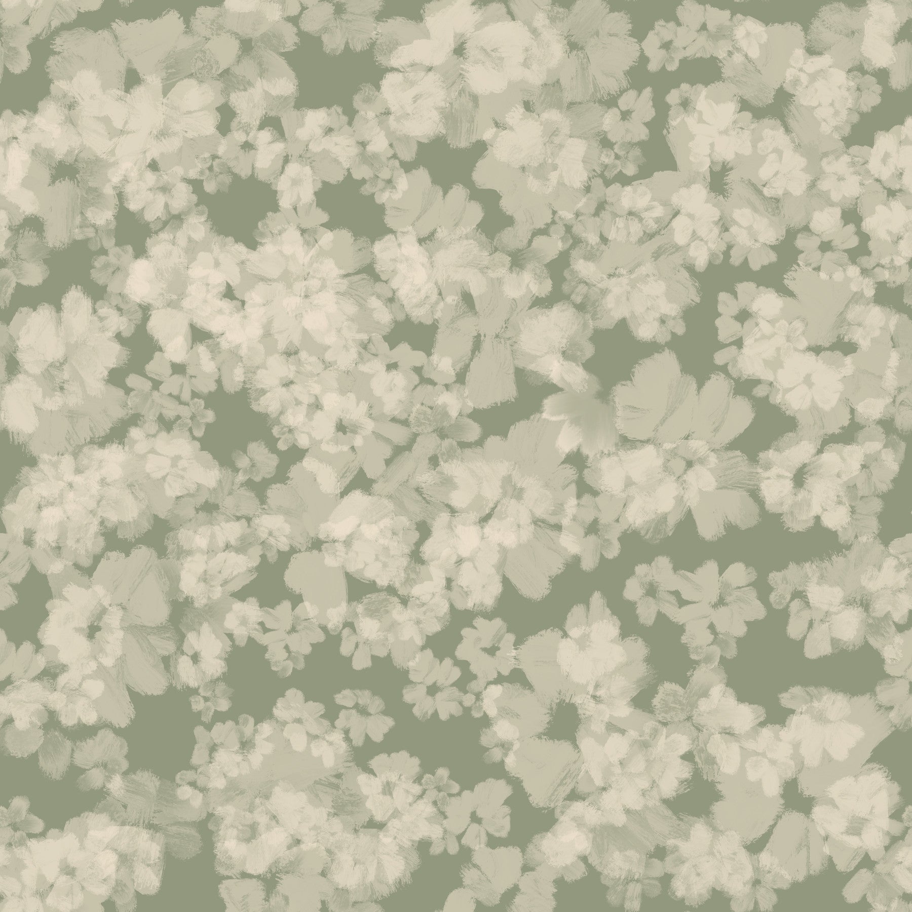 Monochromatic soft green hues for Painterly Soft Blossom Wallpaper cozy wallpaper.